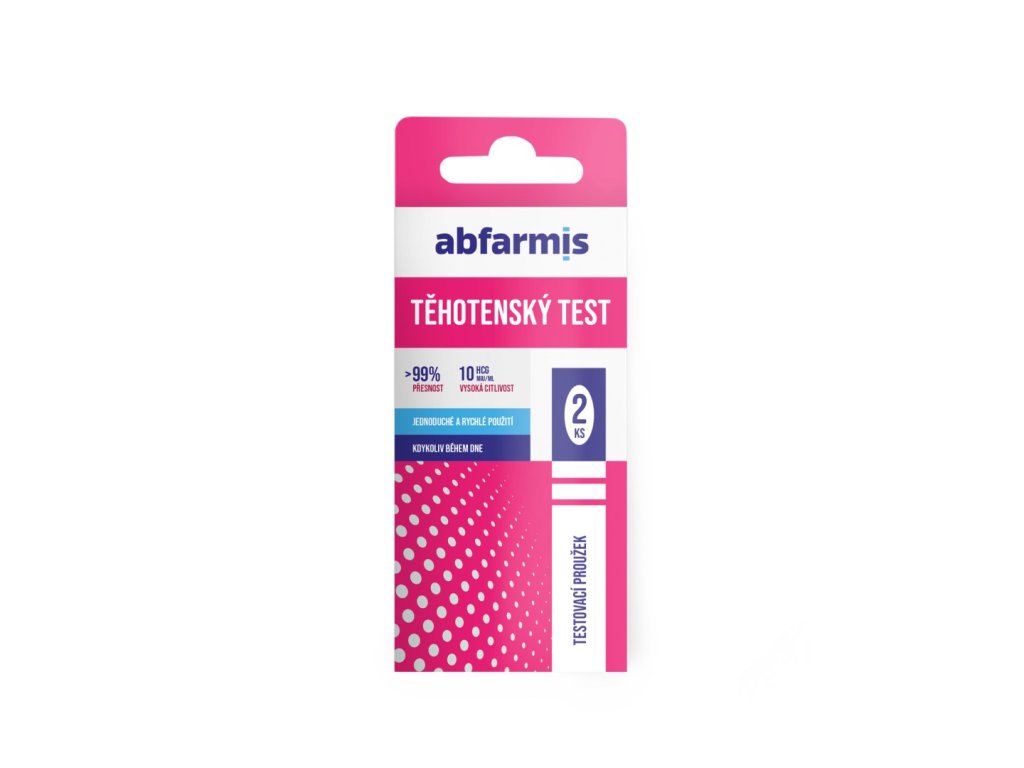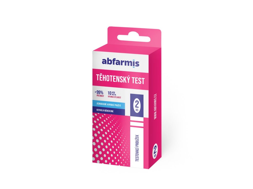 Abfarmis těhotenský test slouží pro včasnou detekci těhotenství a je určený pro sebetestování (in vitro). Zjišťuje přítomnost lidského choriového gonadotropinu (hCG), který se objevuje v moči již v počátečním stádiu těhotenství. Těhotenský test může zjistit těhotenství již ve velmi raném stádiu, cca dva dny od zahnízdění vajíčka v děloze.