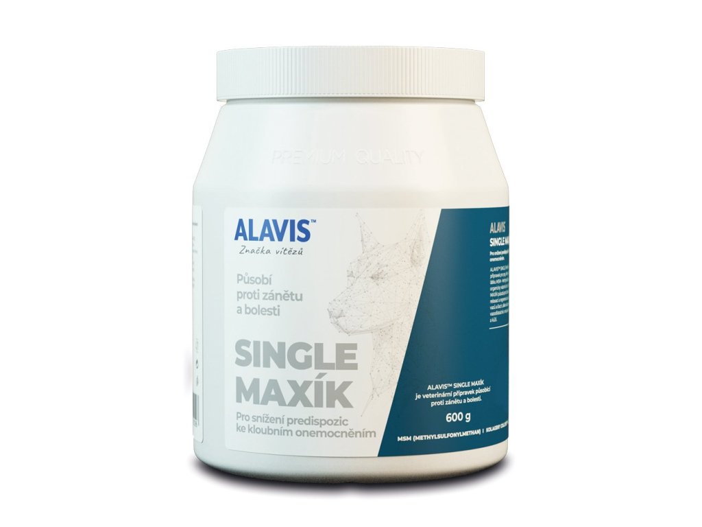 ALAVIS™ Single Maxík se díky svým antioxidačním a detoxikačním účinkům podílí také na odbourání poškozené kloubní tkáně. Rovněž ho lze jako doplněk úspěšně využít v alergologii pro zmírnění alergických projevů či v dermatologii pro vyšší kvalitu srsti, kůže a kožních derivátů.