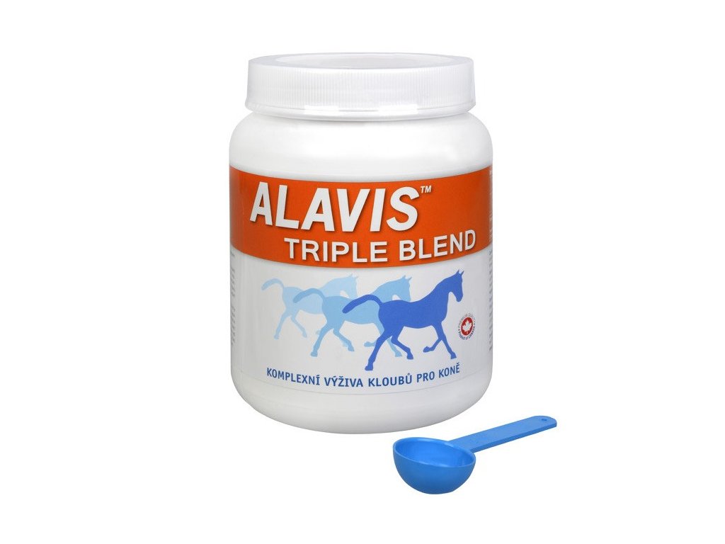 ALAVIS™ Triple Blend je vhodný pro regeneraci pohybového aparátu, zejména pro preventivní podávání u hříbat a koní v pracovní a sportovní zátěži. ALAVIS™Triple Blend je ve formě prášku a je ochucen jablečným pektinem, aby koně přípravek snadněji přijímali.