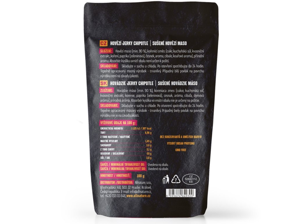 Allnature Hovězí Chipotle Jerky 100 g