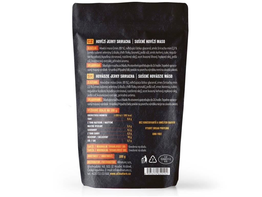 Allnature Hovězí Sriracha Jerky 100 g
