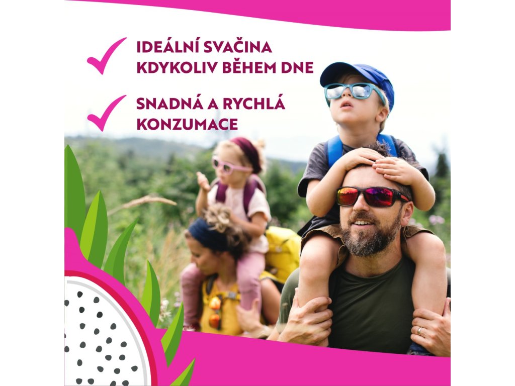 Lyofilizované dračí ovoce je lahodná a sladká svačinka. Dopřejte si kousek jen tak, na chuť, či na doplnění energie, rozhodně nezůstanete u jednoho. Výrobek obsahuje přirozeně sa vyskytujíci sa cukry.
