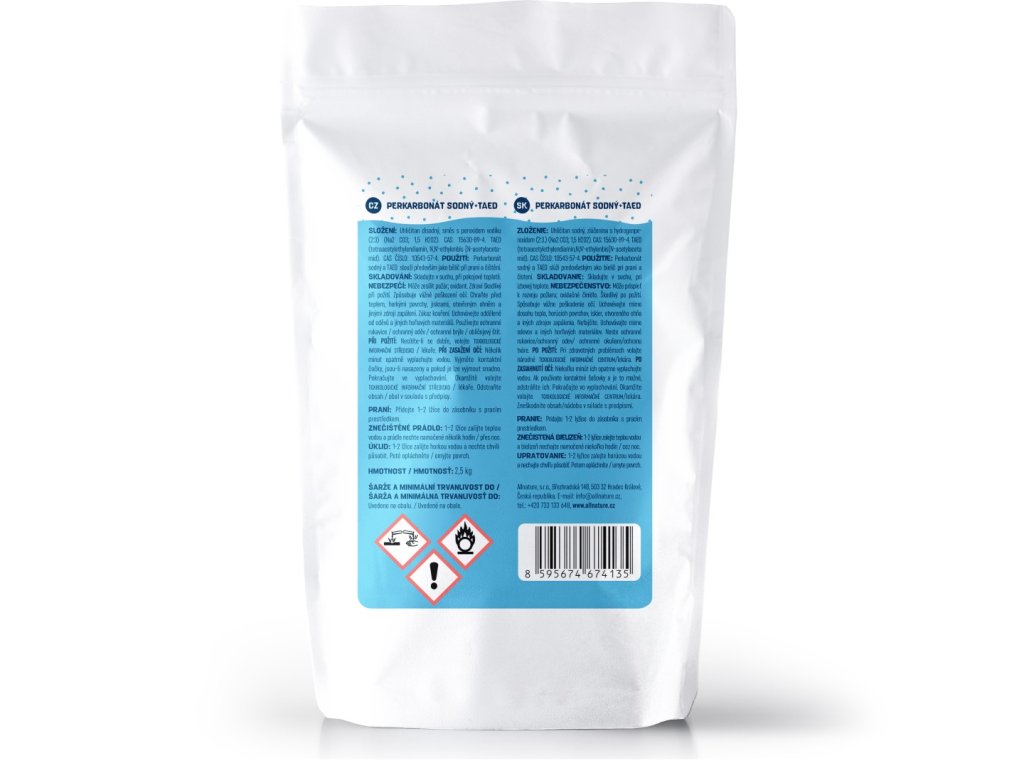 Perkarbonát sodný a TAED slouží především jako bělič při praní a čištění. Přidejte k běžnému pracímu prostředku nebo použijte jako univerzální čisticí přípravek.