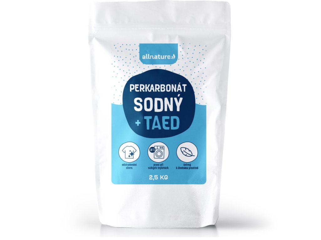 Allnature Perkarbonát sodný s aktivátorem TAED je účinný ekologický čisticí prostředek vhodný pro bělení prádla, odstraňování skvrn a dezinfekci. V kombinaci s teplou vodou uvolňuje aktivní kyslík, který pomáhá rozložit nečistoty a skvrny bez použití chlóru. Přídavek TAED zajišťuje účinnost i při nižších teplotách praní. Ideální pro bílé prádlo, čištění koupelen nebo namáčení textilií.