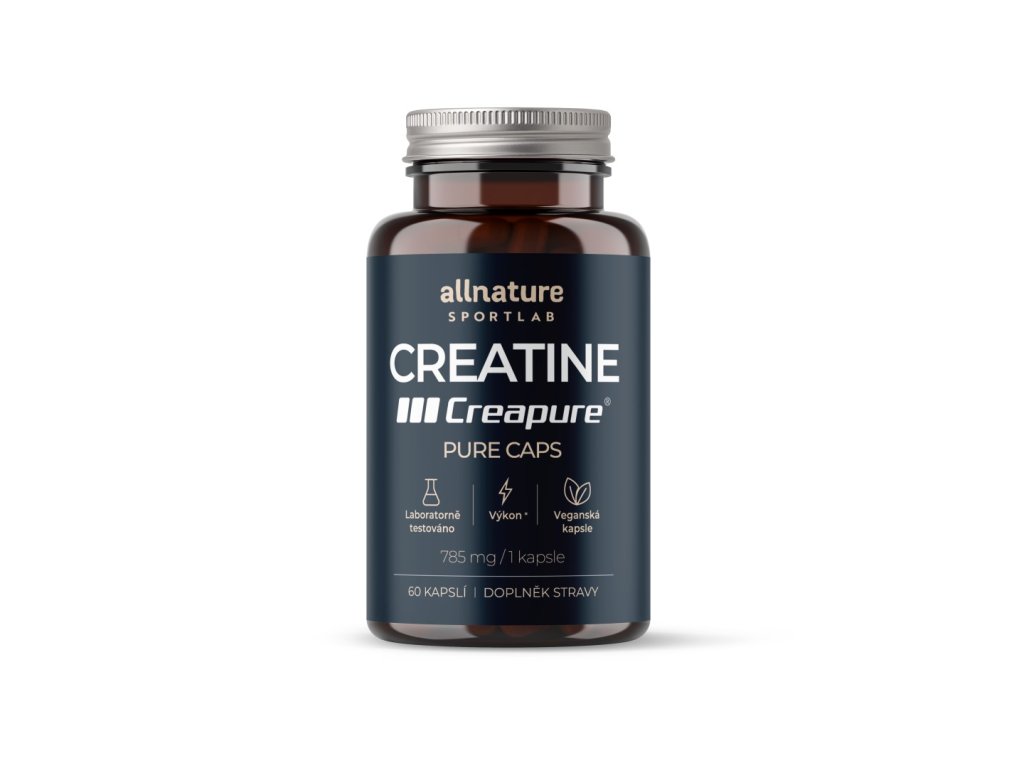 Allnature Sportlab Creatine Creapure® 60 kapslí je doplněk stravy s obsahem kreatin monohydrátu ve značkové kvalitě Creapure®. Praktická kapslová forma umožňuje snadné užívání a přesné dávkování bez nutnosti míchání nápojů.