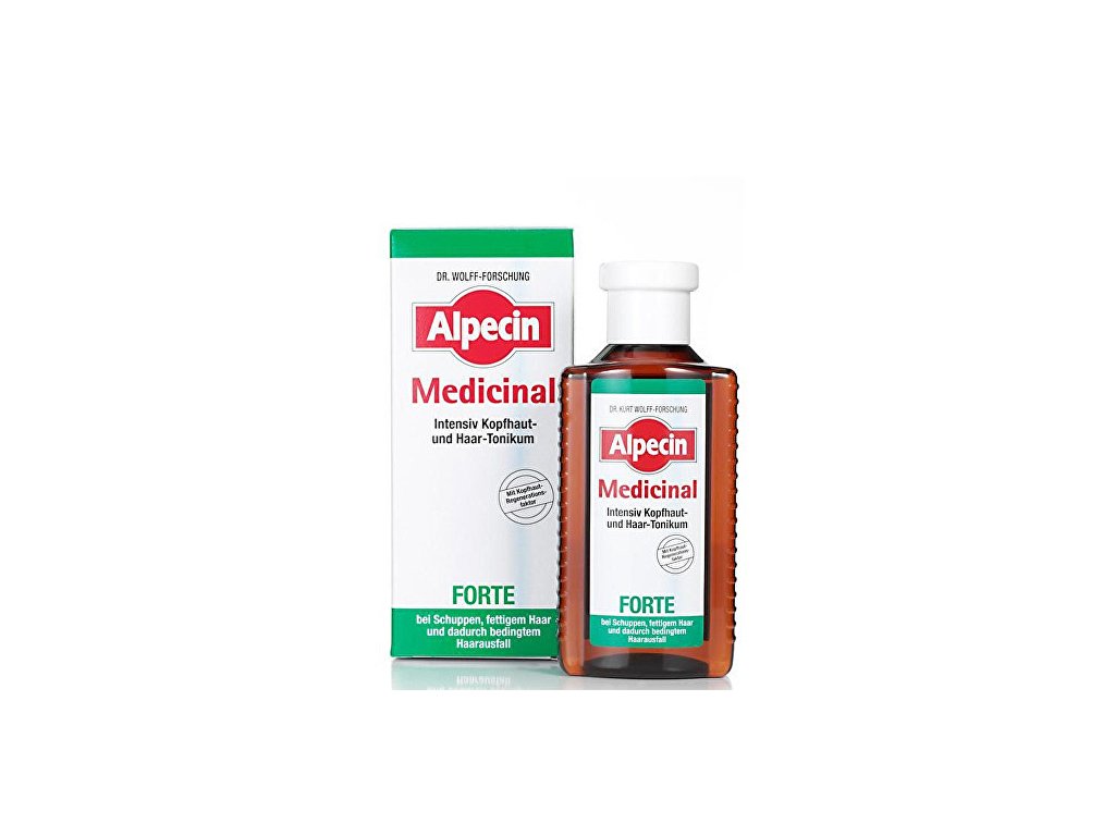 ALPECIN Medicinal Forte - intenzivní tonikum na vlasy je hodné pro každodenní použití jako základní péče proti lupům, mastné pokožce a proti padání vlasů. Tonikum odstraňuje nežádoucí lupy, zmírňuje svědění vlasové pokožky, zklidňuje podráždění a zabraňuje vypadávání vlasů, které je s tím spojeno. Každodenní masáž hlavy podporuje přirozené funkce kůže. Aktivní multikomplex přírodních účinných látek (salicyl z vrby, mentol, tymol) zlepšuje prokrvení, posiluje obranyschopnost kůže a předchází zánětlivým procesům. Doporučeno pro každodenní použití.