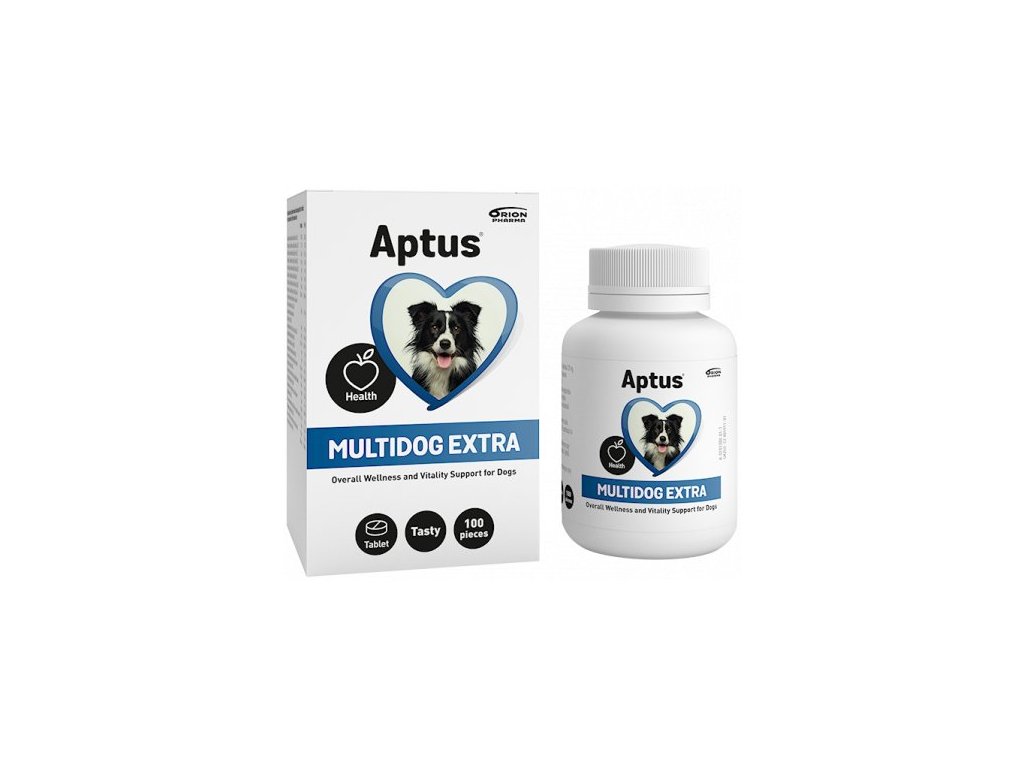 Tablety Aptus Multidog Extra s příchutí jater mohou být podávány přímo do tlamy jako pamlsek. Můžete je také rozdrdit a zamíchat do krmení. Někdy může Váš pes potřebovat každodenní suplementaci multivitaminem i tehdy, když žere nedostatečně. Při krmení doma připravovaným krmením je přidávání multivitaminového doplňku stravy nezbytné k dosažení správné nutriční hodnoty krmiva. Multivitaminový doplněk stravy potřebují často také nemocní a stresovaní psi v průběhu rekonvalescence. Aptus Multidog Extra je multivitaminový doplněk stravy ke každodennímu používání k podpoře celkového zdraví a vitality Vašeho psa.