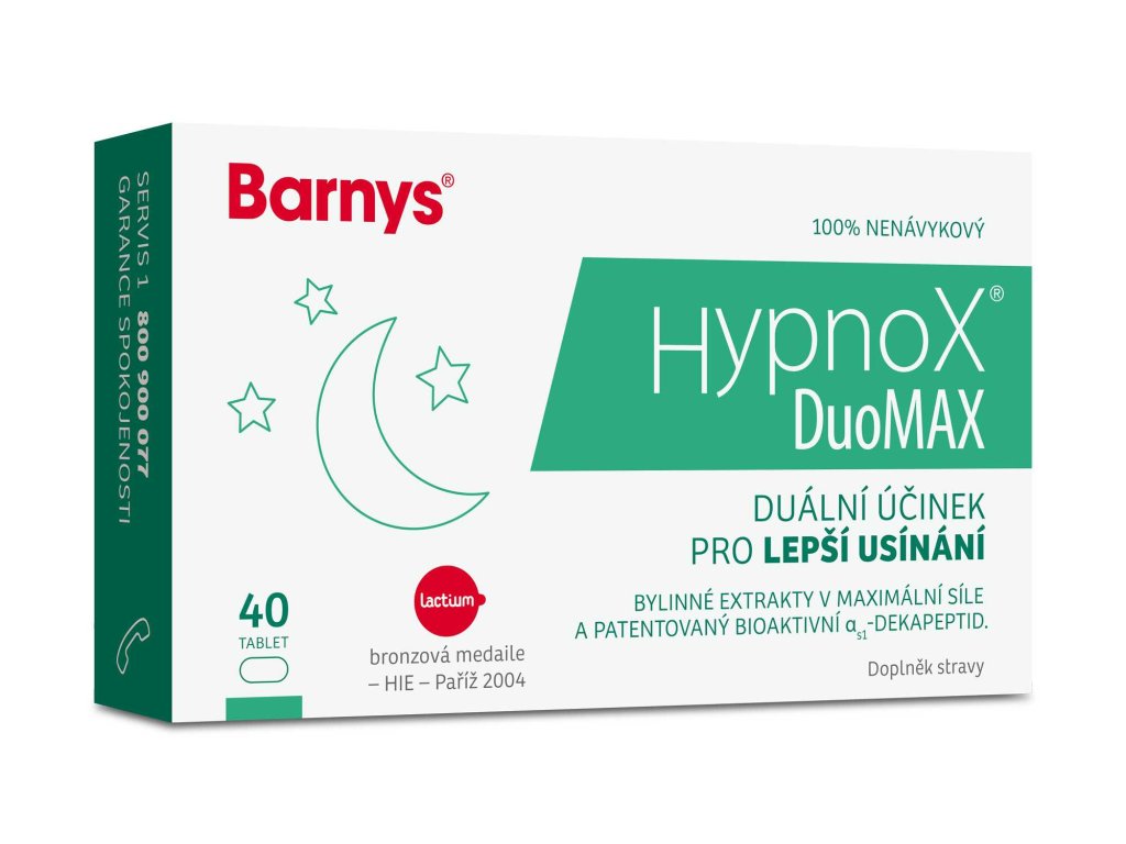 Pokud hledáte nejkomplexnější a nejsilnější přírodní směs pro svůj zdravý spánek, chcete ovlivnit poruchy spánku nebo celkovou nespavost, vyzkoušejte bylinný, čistě přírodní přípravek Hypnox® DuoMAX, který obsahuje unikátní směs bylin a inovativního bioaktivního alfa s1 dekapeptidu.