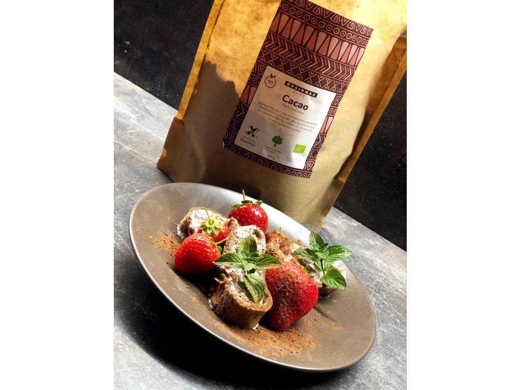 Pravé peruánské kakao Kakaový prášek z čistých peruánských bobů je ceněný pro svůj obsah polyfenolů, theobrominu a minerálních látek. Přirozeně obsahuje železo, hořčík a zinek a další minerály. Kakao obsahuje také aminokyselinu tryptofan, která je součástí přirozené stravy bohaté na bílkoviny. Možnosti použití kakaa Pro přípravu jednoduchého a lahodného nápoje smíchejte 2–3 polévkové lžíce kakaa s klasickým nebo rostlinným mlékem.Nápoj si můžete obohatit o bylinné prášky, jako je maca, ashwagandha nebo lékořice. Kakao se skvěle hodí také do proteinového šejku, snídaňových kaší, dezertů nebo při pečení. Nepražené kakao v prémiové kvalitě. Ne každý kakaový nápoj obsahuje vysoký podíl pravého kakaa. Řada běžně dostupných produktů obsahuje jen malé množství kakaového prášku a vysoký podíl cukru. BrainMax Pure Organic Cacao pochází z Peru – oblasti s dlouhou tradicí pěstování kakaa, sahající až ke starým jihoamerickým civilizacím. RAW kakao vyniká přirozeně vyšším obsahem kakaového másla (okolo 20 %), které dodává plnou chuť i výrazné aroma. Kakao je zároveň bohaté na rostlinné bílkoviny (27 g na 100 g), které přispívají k udržení svalové hmoty. Pravé kakao - odrůda Forastero Kakao se vyrábí pomletím nepražených kakaových bobů (Theobroma cacao), díky čemuž si zachovává přirozený obsah přírodních látek, jako jsou flavonoidy a theobromin. Nepražené kakao si uchovává charakteristickou chuť i vůni a bývá ceněno pro své jemnější zpracování. Kakao obsahuje také theobromin – přírodní látku podobnou kofeinu, která je spojována s jemně povzbudivým účinkem, ale bez výrazného stimulačního efektu jako u kávy. BrainPedia.cz - místo nabité informacemi! Se správnými informacemi nelze udělat špatné rozhodnutí. Výživové hodnoty na 100 g Energetická hodnota 1852,8 kJ / 442,8 kcal Tuky 22 g - z toho nasycené mastné kyseliny 12,8 g Sacharidy 13,4 g - z toho cukry 1 g Vláknina 31,1 g Bílkoviny 27 g Sůl 0,08 g BIO certifikace CZ-BIO-001 Naše Kakao z Peru má BIO certifikát - Produkce ekologického zemědělství EU / mimo EU. Nákupem podpoříte i české lesy #stromzaobjednavku! Složení: 100% BIO Kakao (Theobroma cacao) - odrůda Forastero. Původ: Peru Distributor: BRAINMARKET s.r.o., Vítkovice 3053, 703 00 Ostrava, Česká republika. Skladování: Uchovávejte v suchu, chladu a nevystavujte přímému slunečnímu záření. Hmotnost: 1000 gDoplňkové parametry