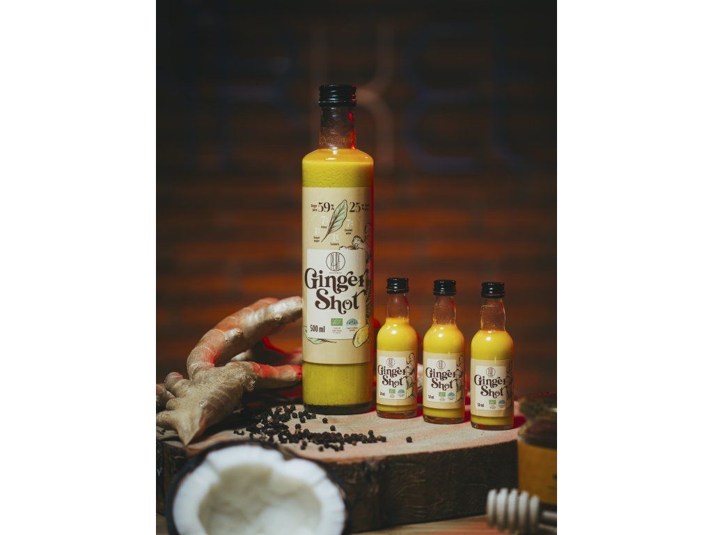 Zázvorová síla v každém doušku! Zázvor patří mezi tradiční zahřívací koření, ceněné nejen pro své výrazné aroma a pikantní chuť, ale také pro své místo v kuchyni i lidovém užívání. BrainMax Pure Ginger Shot obsahuje za studena lisovanou šťávu ze zázvoru, citronu a dalších přírodních složek, které si díky šetrnému zpracování uchovávají svou autentickou chuť. Díky přidanému citronu a kurkumě je nápoj přirozeně bohatý na rostlinné látky, které jsou oblíbené zejména v období sezónních změn. Lze ho pít samotný nebo přidat do vody či vlažného čaje. Zdroj vitamínů Podpora imunity Přispívá k normálnímu trávení Zázvorový shot - intenzivní chuť a síla přírody Ginger Shot je kombinací za studena lisované zázvorové šťávy s citronem, kurkumou, medem a špetkou kampotského pepře. Díky šetrnému zpracování si všechny složky uchovávají svou přirozenou chuť i aroma. Díky praktickému dávkování ho využijete jako součást ranní rutiny nebo jako povzbuzující doplněk v průběhu dne. Vhodné k přímé konzumaci i k ředění vodou či přidání do vlažného čaje. Vyrobeno z BIO surovin bez konzervantů či umělých přísad. Kurkuma - tradičně ceněná rostlina v BIO kvalitě Kurkuma (Curcuma longa) je koření s tisíciletou tradicí, které se využívá nejen v kuchyni, ale také v rámci tradičních systémů jako je ajurvéda. Její výrazná žlutá barva a charakteristická chuť ji činí oblíbenou součástí mnoha receptů. Kurkuma přispívá k normálnímu trávení, pomáhá udržovat zdraví jater a podporuje normální činnost dýchacího systému. Podílí se také na udržení normálního stavu kloubů a kostí a podporuje nervovou soustavu a duševní rovnováhu. (Zdravotní tvrzení vychází z nařízení EU č. 432/2012.) Kampotský pepř - tradiční chuť s původem Kampotský pepř pochází z Kambodže a je ceněný pro svou plnou, aromatickou chuť. V kombinaci se zázvorem, citronem a kurkumou dodává Ginger shotu pikantní závěr a vyvážený charakter. Patří mezi tradičně používaná koření, která jsou oblíbená v asijské i evropské kuchyni. Dávkování Doporučená denní dávka je 3 x 60 ml. Před konzumací důkladně protřepejte. Složení ve 100 ml Energetická hodnota 852 kJ/ 203 kcal Tuky 0,08 g Sacharidy 8,75 g z toho cukry 6,34 g Bílkoviny 0,9 g BIO certifikace CZ-BIO-001 Náš Ginger shot má BIO certifikát - Produkce ekologického zemědělství EU / mimo EU. Nákupem podpoříte i české lesy #stromzaobjednavku! Složení: (59%) Zázvorová šťáva*, (25%) citrónová šťáva*, (7%) kokosová voda*, (7%) med*, (1%) kurkuma*, (1%) pepř*. *produkt z ekologického země. Obsahuje 100% surovin v BIO kvalitě. Datum spotřeby (číslo šarže) uvedeno u čárového kódu. Výrobce: BRAINMARKET s.r.o., Vítkovice 3053, 703 00 Ostrava, Česká republika. Česká republika. Skladování: Při pokojové teplotě, na suchém a tmavém místě. Upozornění: Chraňte před mrazem a přímým slunečním zářením. Skladujte v suchu při teplotě do 25°C. Po otevření spotřebujte do 7 dní. Výrobce ani distributor neručí za škody vzniklé nevhodným použitím nebo skladováním. Nepřekračujte doporučenou denní dávku. Výrobek je pasterován.Doplňkové parametry