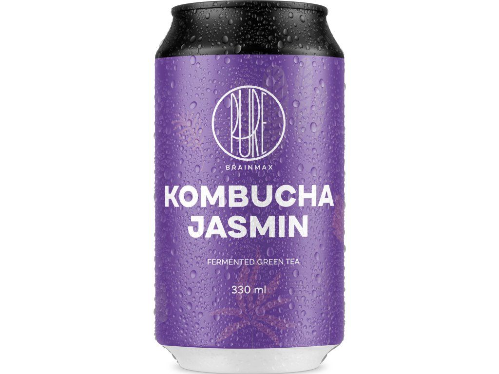 Co je kombucha? Kombucha je fermentovaný nápoj a přestože základní surovina připomíná houbu, nejedná se o houbu v pravém slova smyslu. Přesněji řečeno jde o speciálně vyšlechtěnou mikrobiální kulturu, která je zodpovědná za celý fermentační proces. Zelený čaj jako základ výborné kombuchy Pro základ kombuchy jsme zvolili zelený čaj, který není jen zdrojem kofeinu, ale také katechinů. Polyfenolických sloučenin, které propůjčují nápoji silné antioxidační vlastnosti. Fermentací se navíc zvyšuje antioxidační účinek obsažených látek oproti běžnému čaji. Zelený čaj je výborný základ pro kombuchu, protože se tím ještě násobí jeho vliv na zvýšení energie. Proto se po vypití budete cítit plní elánu. Přestože je k výrobě kombuchy zapotřebí cukr, jeho množství je natolik malé, že jej lze označit za nízkokalorický nápoj. Nepasterizovaná a nefiltrovaná Kombucha je sama o sobě produktem mnoha významných látek a probiotických kultur. Aby si tyto látky zachovala, kombuchu dále nepasterizujeme ani nefiltrujeme. Díky tomu si může vysloužit označení RAW a jako takovou je zapotřebí kombuchu uchovávat v lednici, aby nedošlo k jejímu znehodnocení. Jak chutná kombucha? Podmanivá chuť jasmínu doplněná lehkými tóny zeleného čaje s jemnou kyselinkou a trochou osvěžující svíravosti typické právě pro většinu kvalitních zelených čajů. Navíc není příliš sladká. Jelikož není založena na cukernaté chuti ale na kvalitním čajovém fermentu, patří ta naše s nejnižším obsahem cukrů vůbec! Kombuchu doporučujeme otevírat vychlazenou, v opačném případě může vypěnit. Kombucha a trávení Naše střeva jsou osídlena miliardami bakterií a mikroorganismů, které mají pro naše zdraví nepostradatelný význam. Představte si mikrobiom jako různorodou komunitu organismů, kdy na jedné straně stojí bakterie, které nám škodí a na straně druhé bakterie, které nám pomáhají. K dosažení rovnováha mezi těmito bakteriemi nám mohou pomoci některé potraviny. Fermentované potraviny, jako jsou jogurty, kimchi nebo právě kombucha obsahují živé mikroorganismy. Jelikož je kombucha produktem fermentace, vzniká řada probiotických kmenů, které jsou důležité pro vyvážený střevní mikrobiom. Kombucha je díky procesu fermentace bohatá na probiotické kmeny především z řady saccharomyces. Kdy si dopřát kombuchu? Kombucha obsahuje kolonii bakterií a kvasinek, které jsou po smíchání s cukrem zodpovědné za zahájení fermentačního procesu. Díky tomu je bohatá nejen na probiotické kmeny, ale také na enzymy. Proto je kombucha výborným nápojem po jídle, kdy podpoří trávení a minimalizuje pocity těžkého žaludku. Kombucha obsahuje 0,5–1,2 % alkoholu, který přirozeně vzniká při fermentaci. BrainPedia.cz - místo nabité informacemi! Se správnými informacemi nelze udělat špatné rozhodnutí. Výživové hodnoty na 100 g Energetická hodnota 60 kJ / 15 kcal Tuky < 0,1 g - z toho nasycené mastné kyseliny < 0,01 g Sacharidy 3,7 g - z toho cukry 3,6 g Bílkoviny < 0,1 g Sůl < 0,01 g Nákupem podpoříte i české lesy #stromzaobjednavku! Složení: (96%) nálev ze zeleného čaje a jasmínu (pitná voda, zelený čaj, jasmín), cukr, kvasinkové kultury, bakterie mléčného kvašení. Původ: Česká republika Distributor: BRAINMARKET s.r.o., Vítkovice 3053, 703 00 Ostrava, Česká republika. Skladování: Po otevření ihned spotřebujte. Skladujte na tmavém a chladném místě, při teplotě +2 až +8 °C. Nevystavujte slunečnímu záření či mrazu. Obsahuje přirozeně vyskytující se alkohol do 1,2% obj. Jemný zákal nebo shluky živých kultur nejsou závadou. Není určeno pro děti do 3 let. Hmotnost: 330 mlDoplňkové parametry