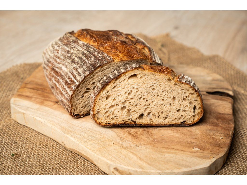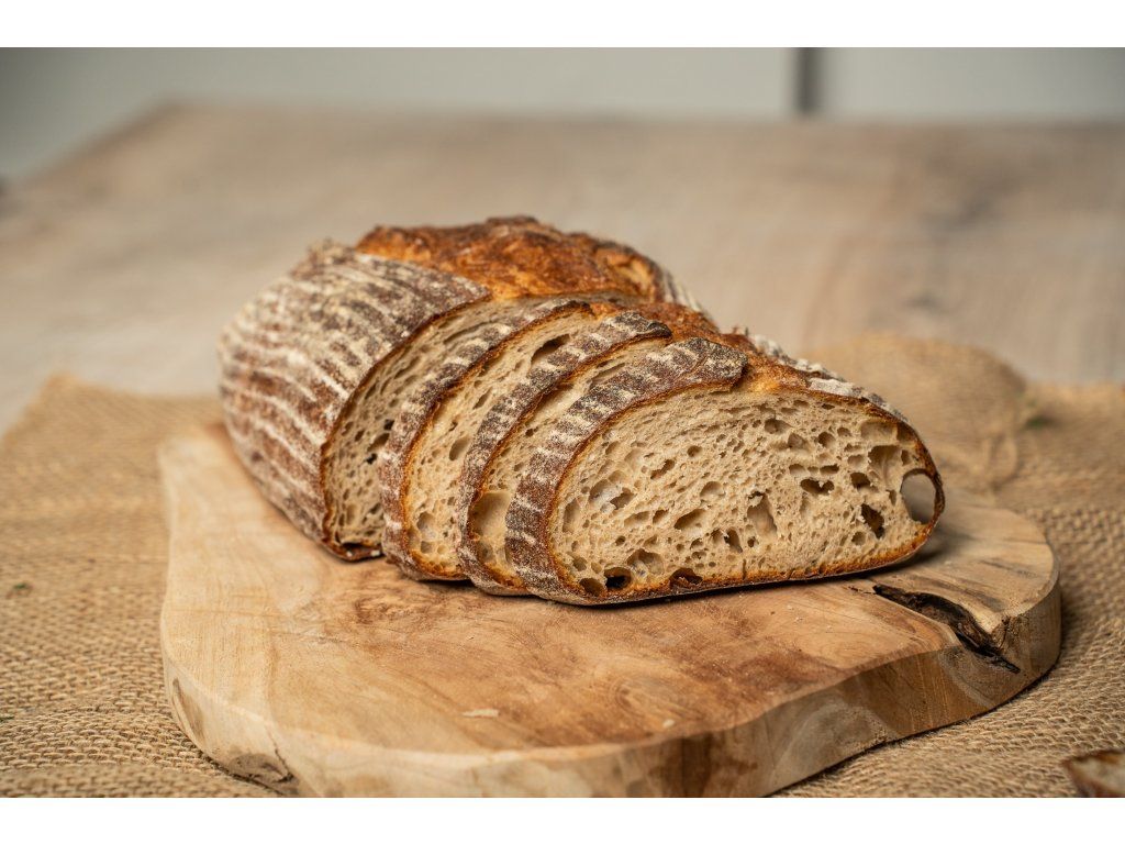 Proč je kváskový chleba lepší volba? Při přípravě kvásku dochází k přirozené fermentaci mouky a vody, při níž mikroorganismy – včetně kvasinek a bakterií rodu Lactobacillus – přetvářejí škroby a cukry na organické kyseliny. Tento proces je zodpovědný za typickou chuť, aroma i konzistenci kváskového chleba. Díky delšímu kynutí má chléb bohatší chuťový profil, výraznější kůrku a vláčnější střídku s typickými vzduchovými bublinkami. Právě dlouhé zrání je jedním z důvodů, proč je kváskový chléb mezi zákazníky tolik oblíbený. Co obsahuje kváskový chleba? Lactobacillus je typ bakterie, která se v kváskovém chlebu vyskytuje více, než v jiných typech chleba a přispívá k vyšším hladinám již zmíněné kyseliny mléčné. Kváskový chléb je tedy považován za nutričně vyváženější a snadněji stravitelný. Kváskový chleba obsahuje mouku, vodu a sůl, s přídavkem kvásku, který slouží jako přirozené kvasící činidlo. Díky této jednoduché kombinaci ingrediencí je kváskový chléb ceněn pro svou plnou chuť a křupavou kůrku. BrainPedia.cz - místo nabité informacemi! Se správnými informacemi nelze udělat špatné rozhodnutí. Výživové hodnoty na 100 g Energetická hodnota 824 kJ Tuky 1,08 g Sacharidy 39,48 g - z toho cukry 1,38 g Vláknina 2,06 g Bílkoviny 6,62 g Sůl 1,03 g BIO certifikace CZ-BIO-001 Náš kváskový chléb má BIO certifikát - Produkce ekologického zemědělství EU / mimo EU. Nákupem podpoříte i české lesy #stromzaobjednavku! Složení: pšeničná mouka*, voda, žitný kvas*, žitná mouka*, pšeničné enzymy*, sůl. *Produkt ekologického zemědělství. Původ: Česká republika Distributor: BRAINMARKET s.r.o., Hladnovská 83/93, Ostrava Skladování: Uchovávejte v suchu, chladu a nevystavujte přímému slunečnímu záření. Hmotnost: 830 gDoplňkové parametry