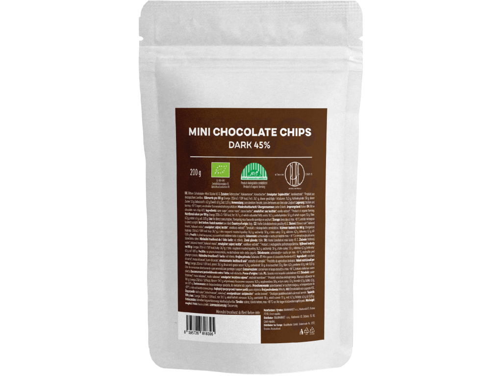 Mini pecičky s plnou chutí kakaa Mini čokoládové pecičky s 45% obsahem kakaa jsou ideální jak k přímému mlsání, tak i jako praktická ingredience do pečení, kaší, dezertů nebo domácích čokoládových polev. Díky menší velikosti se snadno dávkují a rovnoměrně se rozpouštějí. Čokopecičky vynikají intenzivním kakaovým charakterem, zjemněným BIO třtinovým cukrem pro harmonickou a vyváženou chuť. Recept na horkou čokoládu z mini peciček Ingredience:200 ml mléka (plnotučné je nejlepší, může být i rostlinné)30–40 g čokoládových peciček(cca 2 vrchovaté lžíce)1 lžička cukru / medu / sirupu – volitelné, podle hořkostišpetka soli (zvýrazní chuť) Volitelně: špetka skořice nebo vanilkykapka smetany pro krémovostšpetka chilli nebo kardamomuPostup: Mléko zahřejeme v malém hrnci na střední teplotu – nesmí se vařit. Přidáme čoko pecičky a špetku soli. Mícháme metličkou, dokud se čokoláda úplně nerozpustí. Ochutnáme a v případě potřeby dosladíme. Pro dosažení hustší verze necháme 1–2 minuty lehce probublávat za stálého míchání. Podáváme v hrnku nebo sklenici, případně ozdobeno šlehačkou nebo posypkou. Výživové hodnoty na 100 g Energetická hodnota 2126 kJ / 509 kcal Tuky 26,7 g – z toho nasycené mastné kyseliny 16,3 g Sacharidy 58 g – z toho cukry 53 g Složení: BIO třtinový cukr, bio kakaová hmota, bio kakaové máslo, emulgátor: bio sójový lecitin (E322), bio vanilkový extrakt.Použití: k přímé konzumaci, ochucení vaší oblíbené kaše či jogurtu.Skladování: uchovávejte v suchu při teplotě max. +18 °C a nevystavujte přímému slunečnímu záření.Minimální trvanlivost do / číslo šarže: viz etiketa.Země původu: Itálie.Velikost balení: 200 gDistributor: BRAINMARKET s.r.o., Vítkovice 3053, 703 00 Ostrava, Česká republika Nákupem podpoříte i české lesy #stromzaobjednavku!Doplňkové parametry
