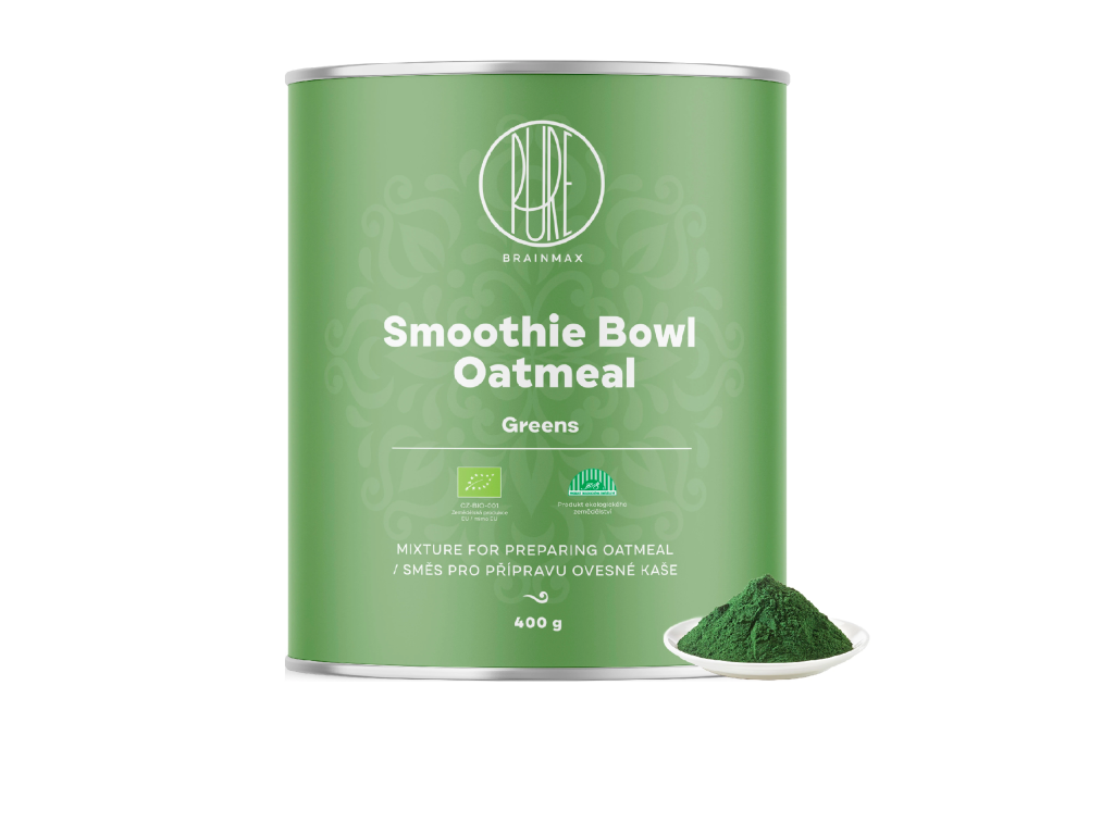 Ovesná kaše – rychlá a výživná snídaně BrainMax Pure Ovesná kaše Greens je ideální volbou pro všechny, kteří chtějí energii z přírody v jednoduché a chutné formě. Tato bezlepková kaše obsahuje kombinaci ovesných vloček, banánu, kokosu a silné směsi superpotravin, jako je chlorella, spirulina, matcha, kurkuma a alfalfa, které přirozeně podporují detoxikaci, trávení a vitalitu. Bez přidaného cukru Superpotravinová směs BIO kvalita Přednosti BrainMax Pure Ovesná kaše, greens Superpotravinová směs – Chlorella, spirulina a matcha přinášejí antioxidanty a podporují přirozenou detoxikaci organismu. Podpora trávení – Psyllium a datlový prášek dodávají vlákninu pro zdravý střevní mikrobiom. Bez přidaného cukru – Přirozeně sladká díky banánu a datlovému prášku. Rychlá příprava – Stačí zalít teplým mlékem nebo rostlinným nápojem a za chvíli je hotovo! 100% BIO a bez lepku – Čisté přírodní složení pro maximální nutriční přínos. Příprava 50 g směs rozmíchejte ve 100 ml teplého mléka. Výživové hodnoty na 100 g Energetická hodnota 1569 kJ / 375 kcal Tuky 7,72 g - z toho nasycené mastné kyseliny 4,20 g Sacharidy 53,45 g - z toho cukry 11,39 g Bílkoviny 18,86 g Vláknina 11,00 g Sůl 0,13 g Výživové hodnoty na porci 50 g Energetická hodnota 785 kJ / 188 kcal Tuky 3,86 g - z toho nasycené mastné kyseliny 2,10 g Sacharidy 26,73 g - z toho cukry 5,70 g Bílkoviny 9,43 g Vláknina 5,50 g Sůl 0,065 g BIO certifikace CZ-BIO-001 Naše Smoothie bowl má BIO certifikát - Produkce ekologického zemědělství mimo EU. Nákupem podpoříte i české lesy #stromzaobjednavku! Složení: Bezlepkové ovesné vločky (obsah lepku maximálně 20 mg/kg), banánový prášek*, kokos strouhaný jemný*, bezlepková ovesná mouka (obsah lepku maximálně do 20 mg/kg), datlový prášek*, psyllium prášek*, alfalfa prášek*, chlorella prášek*, matcha prášek*, kurkuma prášek*, spirulina prášek*. *Produkt z ekologického zemědělství. Obsahuje 100 % surovin v BIO kvalitě. Výrobek může obsahovat stopy mléka, skořápkových plodů a arašídů. Původ: EU/ mimo EU. Vyrobeno v České republice. BRAINMARKET s.r.o., Vítkovice 3053, 703 00 Ostrava, Česká republika. Balení obsahuje 8 porcí. Skladování: Uchovávejte v suchu, chladu a nevystavujte přímému slunečnímu záření. Po otevření spotřebujte do dvou měsíců nebo do data trvanlivosti. Hmotnost: 400 gDoplňkové parametry