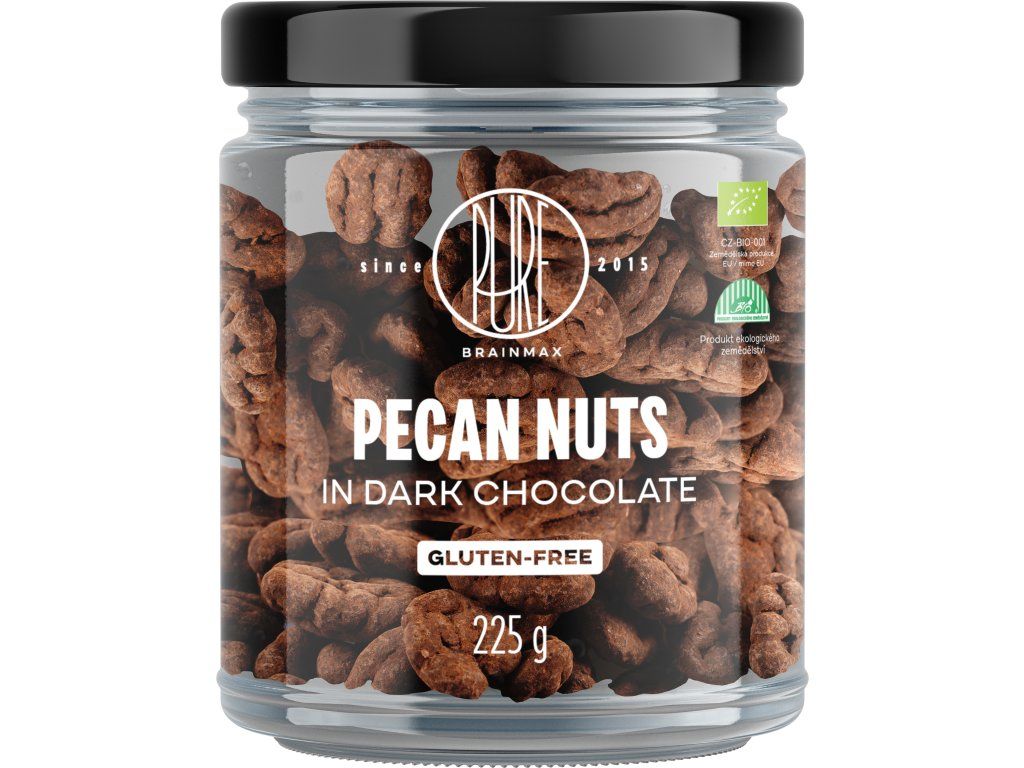 BrainMax Pure Pecan Nuts in Dark Chocolate Pekanové ořechy v hořké čokoládě BIO 225 g