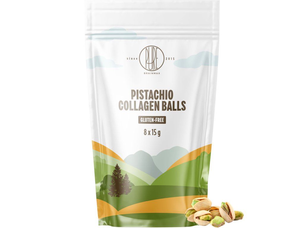 BrainMax Pure Pistachio Collagen Balls Kolagenové kuličky Pistácie 8 ks