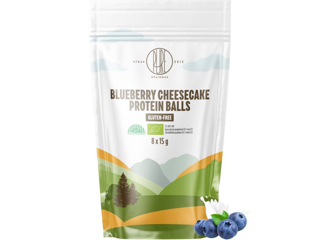 BrainMax Pure Protein Balls Blueberry Cheesecake Proteinové kuličky Borůvkový cheesecake BIO 8 ks