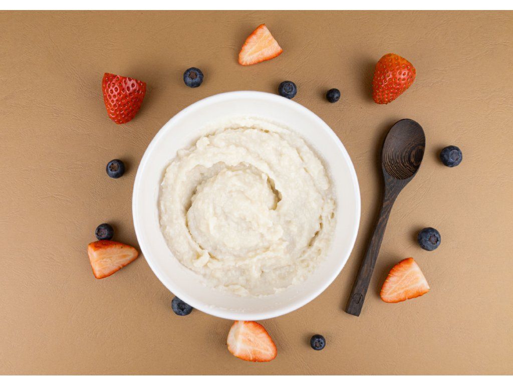 Výživná a chutná snídaně hotová do minuty Rýžová kaše je zdroj sacharidů, je lehce stravitelná jako přirozeně bezlepková je vhodná i do bezlepkové stravy. Kaši můžete připravit na sladko spolu s kakaem, kokosovým sirupem nebo oříškovým máslem. Kromě samotné snídani ji můžete použít k zahuštění polévek, omáček nebo jako základ do pečení. První krok Do misky nasypeme kaši a zalijeme dostatečným množstvím teplé vody či mléka. Druhý krok Kaši dostatečně promícháme a počkáme pár minut, dokud nezhutní. Třetí krok Ozdobíme ovocem, oříšky, medem či sirupem. Můžeme také přidat protein. Přejeme dobrou chuť. Příprava K přípravě stačí požadované množství kaše zalít teplým mlékem nebo vodou a ochutit medem, kokosem, čerstvou hruškou a posypat nasekanými vlašskými ořechy. BrainPedia.cz - místo nabité informacemi! Se správnými informacemi nelze udělat špatné rozhodnutí. Výživové hodnoty na 100 g Energetická hodnota 1479 kJ / 348 kcal Tuky 1,2 g - z toho nasycené mastné kyseliny 0,2 g Sacharidy 75,7 g - z toho cukry < 0,5 g Vláknina 1,12 g Bílkoviny 8,5 g Sůl <0,01 g Výživové hodnoty na porci 50 g Energetická hodnota 739,5 kJ /174 kcal Tuky 0,6 g - z toho nasycené mastné kyseliny 0,1 g Sacharidy 37,85 g - z toho cukry < 0,25 g Vláknina 0,56 g Bílkoviny 4,25 g Sůl 0 g BIO certifikace CZ-BIO-001 Rýžová kaše má BIO certifikát - Produkce ekologického zemědělství EU. Nákupem podpoříte i české lesy #stromzaobjednavku! Složení: (100 %) rýže*. *Produkt z ekologického zemědělství. Obsahuje 100 % surovin zemědělského původu v BIO kvalitě. Minimální trvanlivost (číslo šarže) na zadní straně. Původ: Vyrobeno v České republice. BRAINMARKET s.r.o., Vítkovice 3053, 703 00 Ostrava, Česká republika. Skladování: Uchovávejte v suchu, chladu a nevystavujte přímému slunečnímu záření. Hmotnost: 250 gDoplňkové parametry