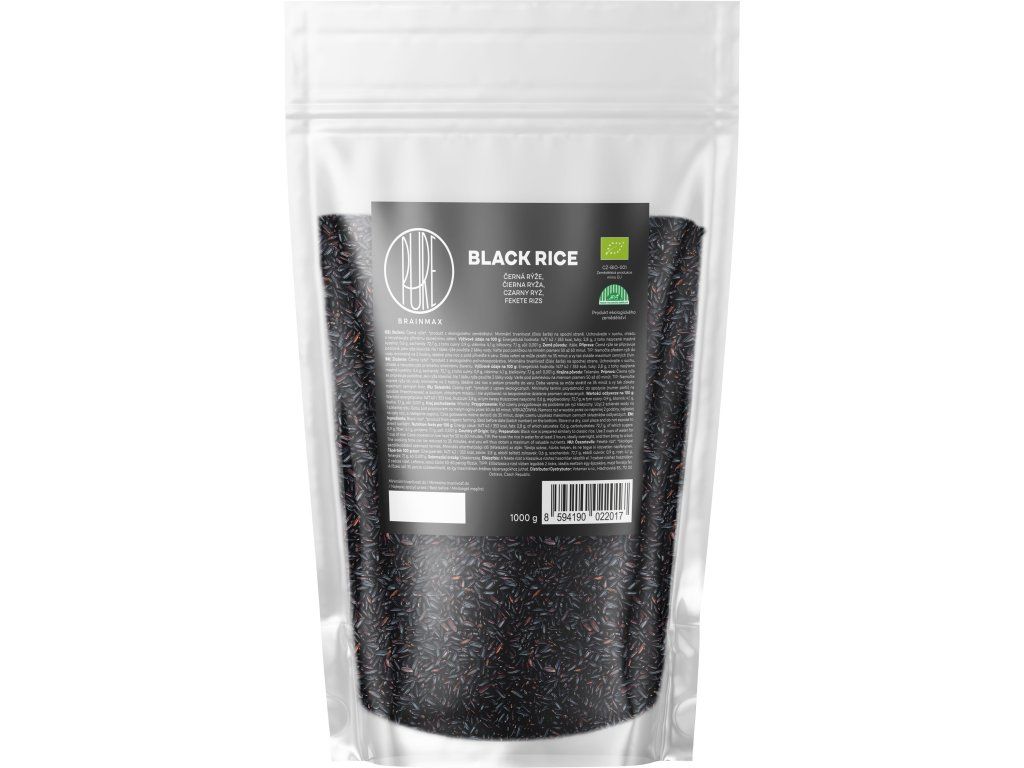 BrainMax Pure Rýže, černá BIO, 1kg Černá rýže má dlouhou historii – v Číně byla po staletí určena výhradně císařské rodině, proto si vysloužila přezdívku „zakázaná rýže“. Nebyla to potravina určená pro veřejnost.Dnes je dostupná všem a oceňovaná nejen pro své tmavě purpurové zbarvení, ale i specifickou oříškovou chuť a pevnější strukturu. Své výrazné zbarvení získává díky přirozenému obsahu antokyanů – rostlinných pigmentů, které se běžně vyskytují například i v borůvkách. Černá rýže je přirozeně bezlepková a přirozeným zdrojem vlákniny, což z ní dělá vhodnou volbu pro pestrý jídelníček. V asijských zemích je běžnou součástí tradiční kuchyně a její tmavé zbarvení krásně kontrastuje s barevnou zeleninou nebo luštěninami. Skvěle se hodí jako příloha, do salátů nebo jako základ pro moderní pokrmy typu „rice bowl“. Jak černou rýži připravit? Černou rýži neproplachujte, vnější vrstva obsahuje antioxidanty. 1 šálek rýže by se měl pomalu vařit ve 2 šálcích vody dokud se voda nevyvaří cca 35 min. u předem namočené rýže a 60 min nemamočené.TIP: rýži předem namočte, nejméně na hodinu, lépe až na 12 hodin a vařte ve stejné vodě, v jaké se namáčela, získáte takto maximum cenných živin. Přednosti BrainMax Pure černé rýže: Přirozený zdroj energie Široké spektrum využití. Přirozeně bezlepková. Bez GMO. BIO, RAW, VEGAN. Možnosti použití černé rýže Rýže lze použít jako přílohu k masových i bezmasým pokrmům. Můžete ji přidat do zeleninových salátů. Je vhodná také do rizota nebo ji lze připravit jako smaženou rýži. Populární recepty s černou rýží Pilaf z černé rýže Složení: 200 g černé rýže 400 ml vody Sůl 2 lžíce olivového oleje 1 nasekaná šalotka 1 lžička sušeného tymiánu 1 lžička sušeného česneku 475 ml kuřecího vývaru 1 bobkový list 35 g mandlí Postup: Černou rýži propláchněte pod studenou vodou. Pak rýži zalíjte 400 ml vody, pořádně zamíchejte a na mírném ohni a pod pokličkou vařte 20 minut. Po cca 10 minutách vaření rýži osolte. Na pánvi si rozehřejte olej, přidejte šalotku a smažte dozlatova. Do pánve přidejte rýži a tymián. Po 3-4 minutách postupně přimíchejte vývar, česnek, bobkový list, sůl, pepř a půl mandlových třísek. Přiveďte k varu, stáhněte teplotu, přikryjte pokličkou a vařte na mírném ohni cca 20 minut dokud se vývar nevypaří a rýže nezměkne. Nakonec ozdobte druhou polovinou mandlových třísek a servírujte. Smažená černá rýže s arašídovou omáčkou Složení: 5 lžic arašídového másla 1/2 lžíce sezamového oleje 1 lžíce kokosových aminos 1/2 lžíce chilli omáčky 1 lžíce medu Kůra z 1 limety 1 lžíce limetkové šťávy 60 ml vody 200 g černé rýže 400 ml vody 1/2 hlávkového zelí 2 jarní cibulky Postup: V malé misce smíchejte arašídové máslo, sezamový olej, sojovou omáčku, chilli omáčku, med, limetkovou kůru, a limetkovou šťávu. Přidejte ke směsi vodu a promíchejte. Černou rýži propláchněte pod studenou vodou. Pak rýži zalíjte 400 ml vody, pořádně zamíchejte a na mírném ohni a pod pokličkou vařte 30-45 minut. Po cca 20 minutách vaření rýži osolte. Olej rozehřejte ve velké nebo wok pánvi. Přidejte zelí, osolte a smažte doměkka. Na talíř připravte černou rýži a hlávkové zelí, přelijte dresinkem a ozdobte jarní cibulkou. Černá rýže se zázvorem a kardamomem Složení: 2 lžíce másla Ghí 1 větší nasekaná šalotka 2 lžíce čerstvého nasekaného zázvoru 200 g černé rýže 400 ml vody 1 lžíce celého kardamomu Postup: Černou rýži propláchněte pod studenou vodou. Pak rýži zalíjte 400 ml vody, pořádně zamíchejte a na mírném ohni a pod pokličkou vařte 30-45 minut. Po cca 20 minutách vaření rýži osolte. Na větší pánvi rozehřejte ghee a přidejte šalotku se zázvorem. Smažte cca 5 minut do hněda. Poté přidejte uvařenou rýži, kardamom a povařte ještě 2 minuty. Rýži ozdobte jarní cibulkou a servírujte. Přednosti BrainMax Pure černé rýže Přirozený zdroj vlákniny Nízký glykemický index Přirozeně bezlepková Výživové údaje na 100 g Energetická hodnota 1477 kJ / 353 kcal Tuky 2,8 g - z toho nasycené mastné kyseliny 0,6 g Sacharidy 72,7 g - z toho cukry 0,9 g Vláknina 4,1 g Bílkoviny 7,1 g Sodík 0,001 g BIO certifikace CZ-BIO-001 Naše černá rýže má BIO certifikát - Produkce ekologického zemědělství mimo EU. Nákupem podpoříte i české lesy #stromzaobjednavku! Složení: 100% organická jasmínová rýže Původ: Kambodža Distributor: BRAINMARKET s.r.o., Vítkovice 3053, 703 00 Ostrava, Česká republika. Skladování: V suchu, v uzavřeném obalu. Hmotnost: 1 kgDoplňkové parametry