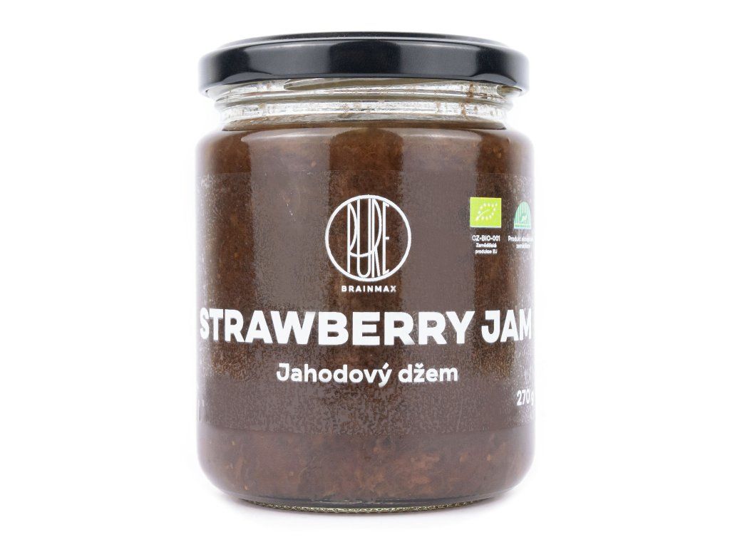BIO původ pro vyšší dávku vitamínů bez chemie Džem je vyroben z celých jahod a to včetně zrníček. Obsahuje 80% BIO jahod a dobře se roztírá. Neobsahuje přidaný cukr a přesto je sladký, díky vysokému procentu použité dužiny. Výborně se hodí k dezertům jako jsou palačinky, wafle nebo jen tak na pečivo. Ručně zpracované jahody Při výrobě je zpracována celá dužina plodu a džem neobsahuje žádné umělé konzervanty nebo barviva. Doporučujeme skladovat v chladu a nevystavovat slunečnímu záření. BrainPedia.cz - místo nabité informacemi! Se správnými informacemi nelze udělat špatné rozhodnutí. Výživové hodnoty na 100 g Energetická hodnota 584 kJ / 138 kcal Tuky 0,9 g - z toho nasycené mastné kyseliny 0,2 g Sacharidy 32 g - z toho cukry 24 g Bílkoviny 0 g Sůl < 0,06 g BIO certifikace CZ-BIO-001 Náš jahodový džem má BIO certifikát - Produkce ekologického zemědělství EU. Nákupem podpoříte i české lesy #stromzaobjednavku! Složení: (80 %) BIO jahody, BIO jablečný koncentrát, zahušťovadlo: pektin. Původ: EU Distributor: BRAINMARKET s.r.o., Vítkovice 3053, 703 00 Ostrava, Česká republika. Skladování: Doporučujeme před konzumací promíchat. Minimální trvanlivost (číslo šarže) na sklenici. Nevystavujte přímému slunečnímu záření. Po otevření uchovávejte v suchu při teplotě +4°C a spotřebujte do 2 měsíců. Hmotnost: 270 gDoplňkové parametry
