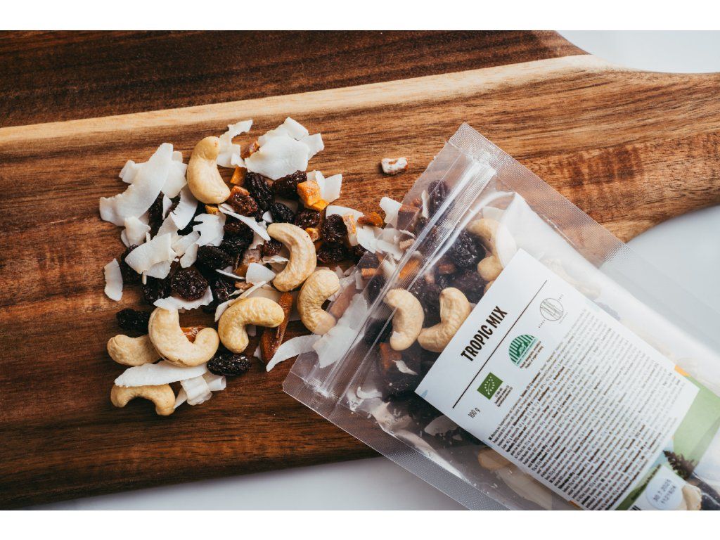 Exotická BIO směs plná zdravé energie Směs sušeného ovoce a kešu ořechů v BIO kvalitě je skvělou volbou pro zdravé mlsání. Obsahuje kešu ořechy, rozinky, mango a kokosové chipsy. Tato kombinace přírodních cukrů, zdravých tuků a vlákniny vám dodá energii a podpoří trávení. Díky vysokému obsahu minerálů je ideální pro každého, kdo hledá výživnou a chutnou svačinu. Chuť tropů na každém kroku Tropic Mix je perfektní volbou pro milovníky exotických chutí. Můžete jej přidat do snídaňových kaší, jogurtů nebo si ho vychutnat samostatně jako svačinu na cestu. Sladkost manga a rozinek se krásně doplňuje s jemně krémovou chutí kešu ořechů a kokosovými chipsy, které dodávají směsi neodolatelný exotický nádech. Bezlepková směs vás osvěží a dodá energii kdykoliv během dne. BrainPedia.cz - místo nabité informacemi! Se správnými informacemi nelze udělat špatné rozhodnutí. Výživové hodnoty na 100 g Energetická hodnota 1891 kJ / 452 kcal Tuky 25,47 g - z toho nasycené mastné kyseliny 11,43 g Sacharidy 46,31 g - z toho cukry 40,20 g Vláknina 6,76 g Bílkoviny 9,10 g Sůl 0,08 g BIO certifikace CZ-BIO-001 Naše směs má BIO certifikát - Produkce ekologického zemědělství mimo EU. Nákupem podpoříte i české lesy #stromzaobjednavku! Složení: (35 %) kešu ořech*, rozinky*, mango kostky*, kokosový chips*. * produkt z ekologického zemědělství. Produkt obsahuje 100% surovin v BIO kvalitě. Výrobek je bezlepkový. Původ: EU a mimo EU zemědělství Distributor: BRAINMARKET s.r.o., Hladnovská 83/93, Ostrava Skladování: Při pokojové teplotě, na suchém a tmavém místě Hmotnost: 100 gDoplňkové parametry