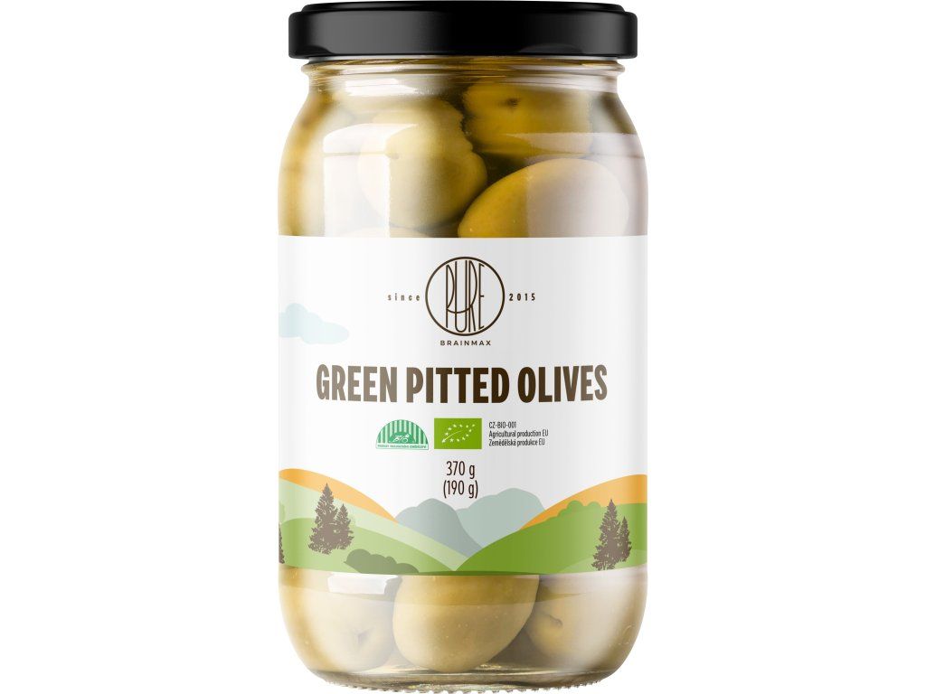 BrainMax Pure Zelené olivy bez pecek BIO 370 g