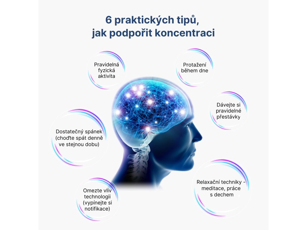 Podpora normálního fungování paměti, pozornosti díky bacopě a ginkgo.