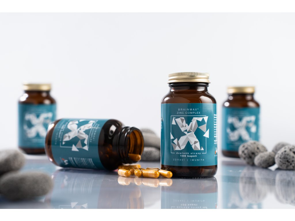 BrainMax Zinc Complex - nejlepší kombinace zinku, selenu a mědi Synergická kombinace zinku, selenu a mědi, která přispívá k normální funkci imunitního systému1,2,3, plodnosti a reprodukci1, zdraví kostí1 a k ochraně buněk před oxidativním stresem1,2,3. Kapsle obsahují zinek a měď ve vysoce vstřebatelných formách a bio kurkumu pro zesílení účinků. Funkce imunitního systému1,2,3 Plodnost a reprodukce1 Normalní stav kostí, vlasů, pokožky1 15 mg elementárního zinku ve vysoce využitelné formě Zinek biglycinát je považována za formu s vysokou vstřebatelností, biologickou dostupností. Tato chelátová forma zinku není pro tělo pouze vysoce využitelnou, ale je také šetrná k trávicímu ústrojí. Vstřebávání zinku může být ovlivněno složkami rostlinné stravy. I proto je chelátová forma zinku vhodnou volbou pro osoby preferující veganskou nebo vegetariánskou stravu. Pro maximální kvalitu jsme zvolili německý MagChel® Zinc Complex obsahuje chelátový zinek prvotřídní německé kvality MagChel® od německé společnosti MAGNESIA, která ve svém závodě více než 40 let produkuje za nejpřísnějších podmínek jeden z nejlepších a nejčistších zinků na světě. Organický a vysoce biologicky dostupný. Stabilní a plně navázaná chelátová forma zinku. Patentovaná forma zinku bisglycinátu MagChel®. Vyráběno v Německu a kapslováno v Česku. Testováno na kvalitu. Certifikováno pro bezpečnost. BrainMax Zinc Complex je testován v nezávislé akreditované laboratoři, která provádí důkladnou analýzu s cílem ověřit její nezávadnost, čistotu a soulad s legislativními limity pro doplňky stravy. Co hlídáme? Těžké kovy Mikrobiologickou nezávadnost Uhlovodíky Certifikát zdravotní bezpečnosti Garantovaná čistota potvrzená mezinárodním antidopingovým testem Naše doplňky stravy prošly přísným testováním v uznávané laboratoři DSHS Köln, která má jako jediná na světě akreditaci potřebnou pro uvedení doplňků stravy na kolínský seznam, který je jako jediný oficiálně uznávaný mezinárodní antidopingovou agenturou WADA. To znamená, že produkt splňuje ty nejvyšší možné standardy čistoty a bezpečnosti. Investovali jsme do testů, které jsou považovány za zlatý standard ve světě sportovní výživy, abychom vám mohli zaručit naprostou jistotu, že držíte v ruce produkt bez kompromisů. Výsledky testování zde. Testováno v laboratoři DSHS Köln Testováno podle kritérií WADA Jistota nulového obsahu zakázaných látek Absolutní bezpečnost i pro profesionální sportovce Selen, měď Kromě zinku obsahuje komplex také měď a selen – minerály, které se navzájem doplňují a přispívají k udržení rovnováhy v těle. Měď přispívá k normální činnosti nervové soustavy a přenosu železa v těle. Selen (v biologicky aktivní formě selenmethioninu) přispívá k normální činnosti štítné žlázy, k udržení normálního stavu vlasů a nehtů a spermatogenezi. Všechny látky v komplexu přispívají k normální funkci imunitního systému1,2,3 a k ochraně buněk před oxidativním stresem1,2,3. Kurkuma - nejprobádanější bylina Kurkuma je známá svým tradičním využitím a širokým spektrem účinků. Přispívá k normálnímu trávení, činnosti jater a kardiovaskulárního systému. Podporuje také činnost nervové a dýchací soustavy, stav kloubů a kostí. Kurkuma je v produktu využita jako funkční plnidlo, protože v našich produktech nechceme používat balastní látky (éčka). BrainMax Zinc Complex pozitivně ovlivňuje: Normální funkci imunitního systému1,2,3 Ochraně buněk před oxidativním stresem1,2,3 Přispívá k normální plodnosti a reprodukci1 Hladinu test0steronu v krvi1 Udržení normálního stavu kostí1, vlasů1,2, nehtů1,2 a pokožky1 Normálním metabolismus vitamínu A1 Rozpoznávací funkce a k udržení normálního stavu zraku1 Syntézu DNA a bílkovin1 Podílí se na procesu dělení buněk1 Normální činnost jater⁴ Normální činnost nervové soustavy3 Normální činnosti štítné žlázy2 Normální činnost kardiovaskulárního systému - krevní oběh4 Normální trávení4 Ověřeno studiemi! 1. BARNETT, Junaidah B, Maria C DAO, Davidson H HAMER, et al. Effect of zinc supplementation on serum zinc concentration and T cell proliferation in nursing home elderly: a randomized, double-blind, placebo-controlled trial. 2016 2. SANNA, Alessandro, Davide FIRINU, Patrizia ZAVATTARI a Paolo VALERA. Zinc Status and Autoimmunity: A Systematic Review and Meta-Analysis. 2018. 3. Prasad, A., Mantzoros, C., Beck, F., Hess, J., & Brewer, G. (1996). Zinc status and serum test0sterone levels of healthy adults.. Nutrition, 12 5, 344-8. 4. Zhao, J., Dong, X., Hu, X., Long, Z., Wang, L., Liu, Q., Sun, B., Wang, Q., Wu, Q., & Li, L. (2016). Zinc levels in seminal plasma and their correlation with male infertility: A systematic review and meta-analysis. Scientific Reports, 6. 5. Allouche-Fitoussi, D., & Breitbart, H. (2020). The Role of Zinc in Male Fertility. International Journal of Molecular Sciences, 21. 6. ZChu, D. (2018). Zinc: A small molecule with a big impact on sperm function. PLoS Biology, 16. Zinek – základní kámen imunity Zinek je důležitý pro normální činnost imunitního systému, který tvoří přirozenou obrannou linii organismu. Tato vlastnost z něj činí důležitý prvek ve výživě, zvláště v obdobích, kdy je potřeba podpořit obranyschopnost těla. Zinek pro muže Zinek přispívá k udržení normální hladiny test0steronu v krvi. Tato vlastnost z něj dělá důležitý minerál zejména pro muže, kteří chtějí podpořit svou výživu i v období vyšších nároků. „Obrázek slouží jako ukázka z odborné literatury – ilustrační účel. Netýká se přímo našeho produktu.“ Vliv zinku na plodnost Zinek přispívá
