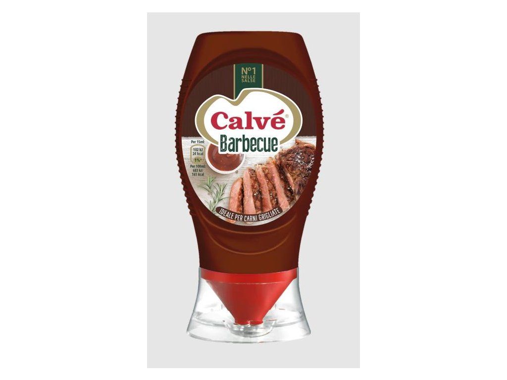 Grilovaná omáčka Calvé má sladkou vůni melasy, ale se silnou vůní dřeva a kouře, ideální pro zvýraznění chuti grilovaného masa.