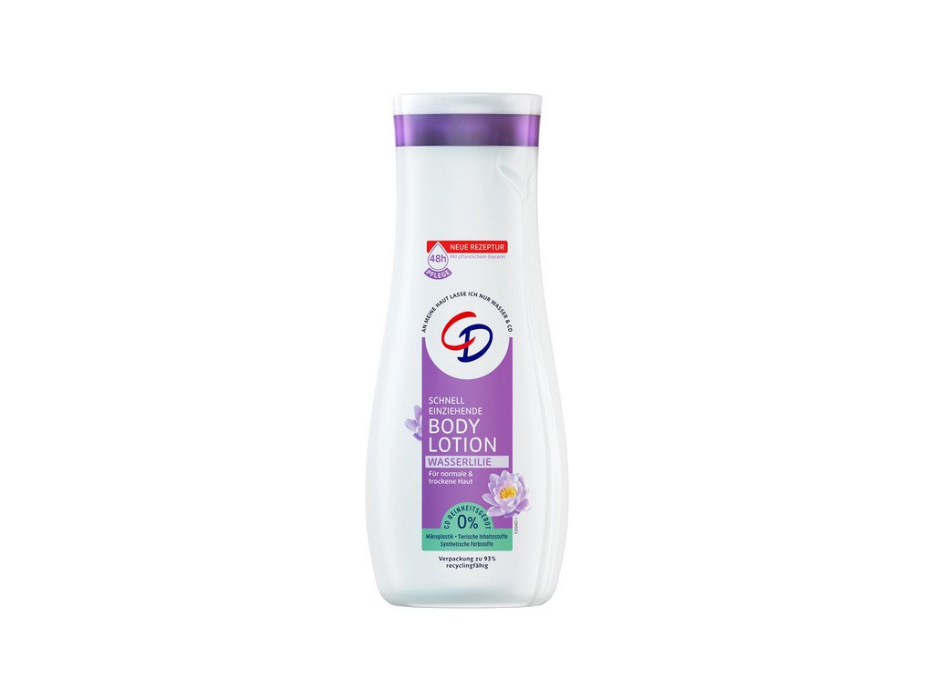 Tělové mléko CD Wasserlilie se rychle vstřebává a zanechává pleť přirozeně jemnou až 24h. Složení mléka je vhodné pro normální až citlivou pleť.