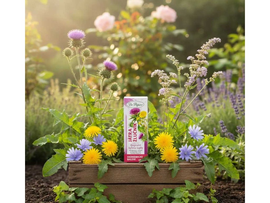 Ostropestřec mariánský a artyčok, oblíbené antioxidanty, pomáhají udržovat zdravou činnost jater, významně přispívají k detoxikaci jater a podporují správné trávení. Ostropestřec navíc působí na naši přirozenou obranyschopnost a odolnost organismu. Obsažená pampeliška udržuje normální funkci jater, stimuluje trávení a pomáhá s vylučováním. Řepík podporuje zdravou funkci žlučníku a jater a také pomáhá s detoxikací. Čekanka a popenec doplňují důležité hořčiny.