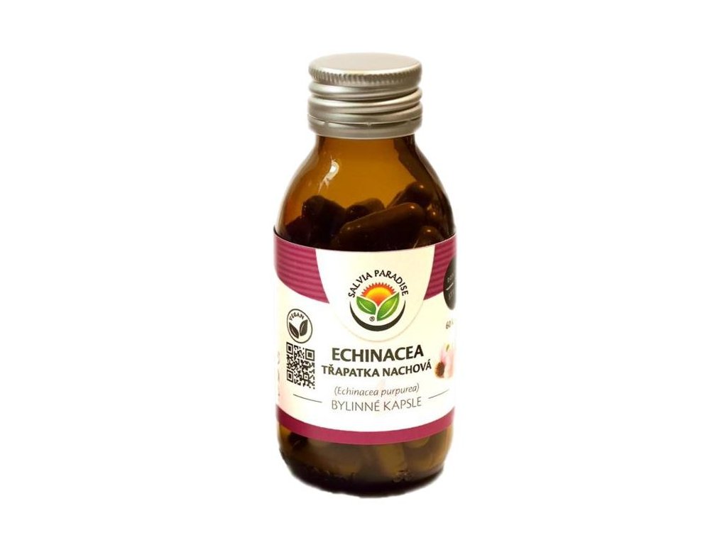 Echinacea – třapatkovka nachová je trvalka dorůstající průměrné výšky 1 m. Sběrnou částí pro fytoterapeutické účely je kořen, který se sbírá na podzim ze tří až čtyřletých rostlin.