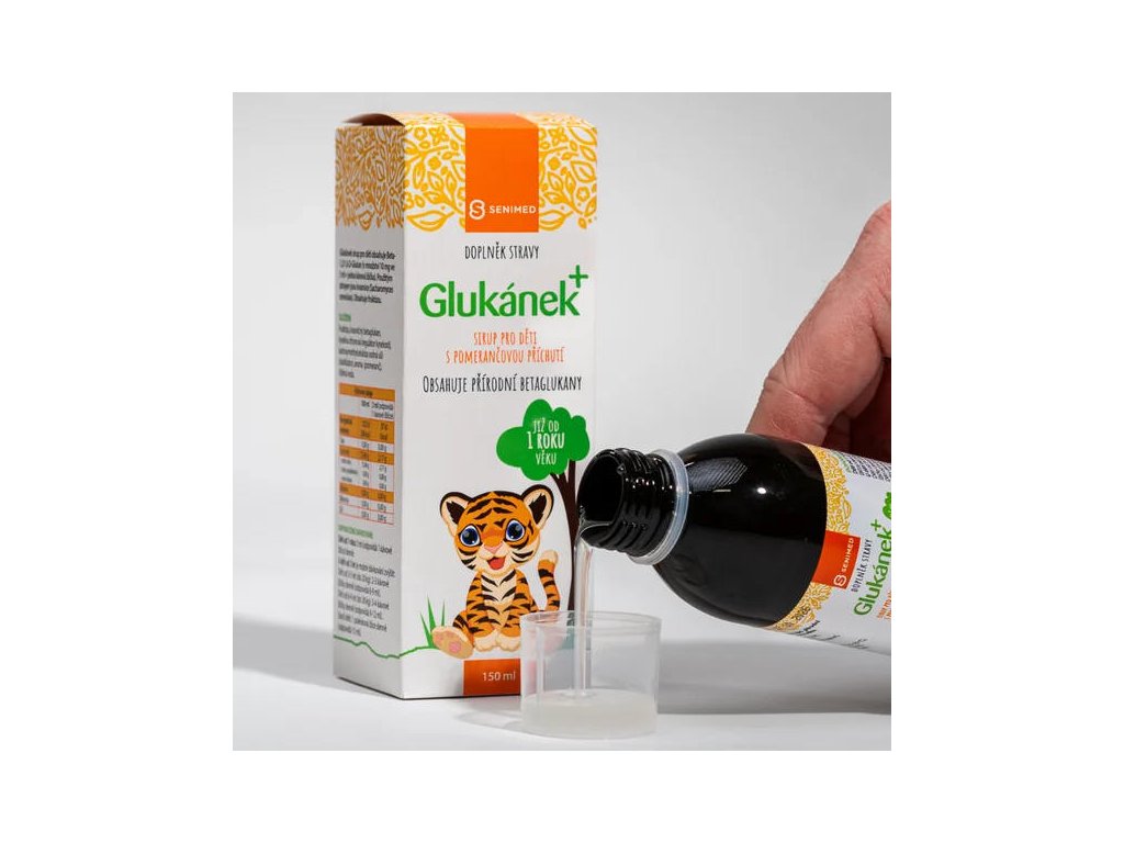 Sirup Glukánek je vhodný pro děti od 1 roku. Má příjemnou pomerančovou příchuť a obsahuje přírodní betaglukany 10 mg v jedné dávce.