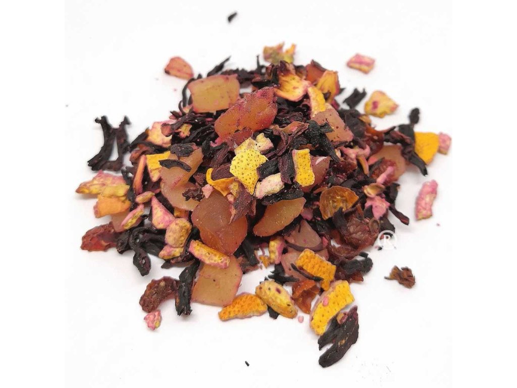 Složení: ibišek súd. květ, ananas, papája, pomerančová kůra, šípek, aroma (maracuja)