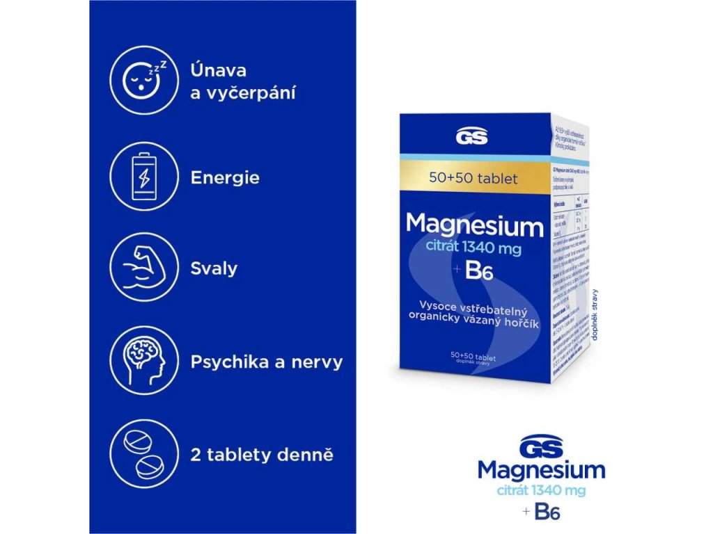 GS Magnesium citrát 1340 mg+B6 50+50 tbl.
