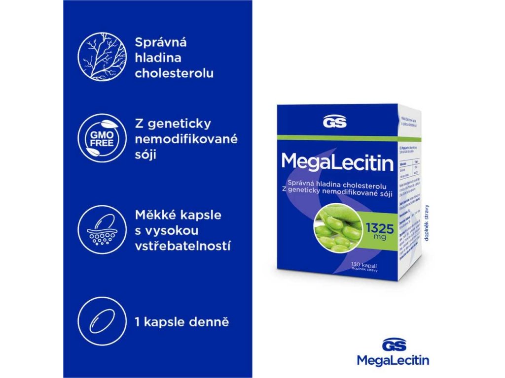 GS MegaLecitin obsahuje kvalitní sójový lecitin získaný z non-GMO sóji. Lecitin je směs fosfolipidů, které jsou základní stavební složkou buněčných membrán v celém organismu. Podílí se na správné funkci buněk, zejména nervové soustavy a jater, a bývá často označován jako „potrava pro mozek“.