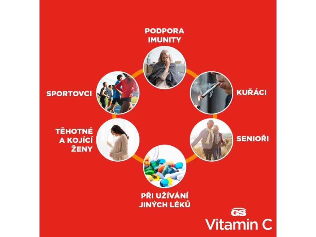 GS Vitamin C 500 mg se šípky je navržen pro každodenní podporu imunitního systému a ochranu organismu před oxidačním stresem. Vitamin C (kyselina L-askorbová) je silný antioxidant, který přispívá k ochraně buněk před působením volných radikálů, podporuje tvorbu kolagenu (důležitého pro normální funkci cév, kostí, chrupavek, dásní a pokožky) a napomáhá snížení míry únavy a vyčerpání.