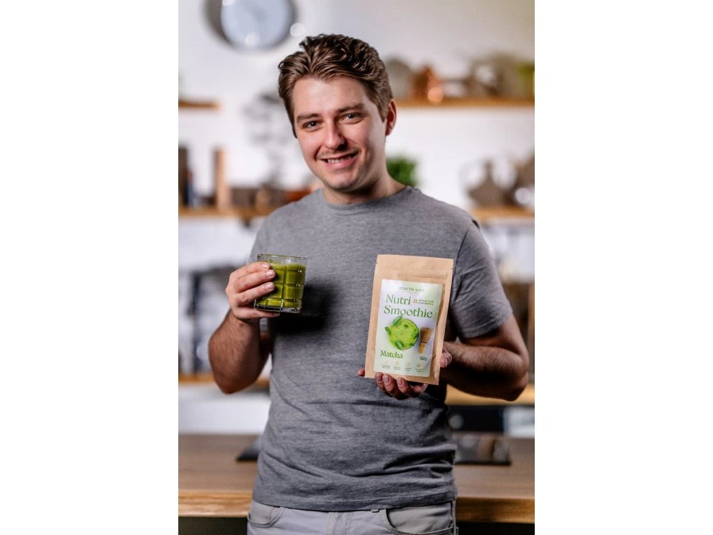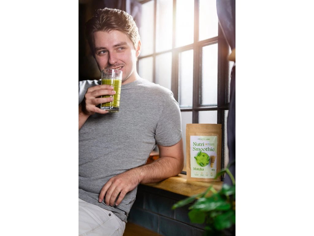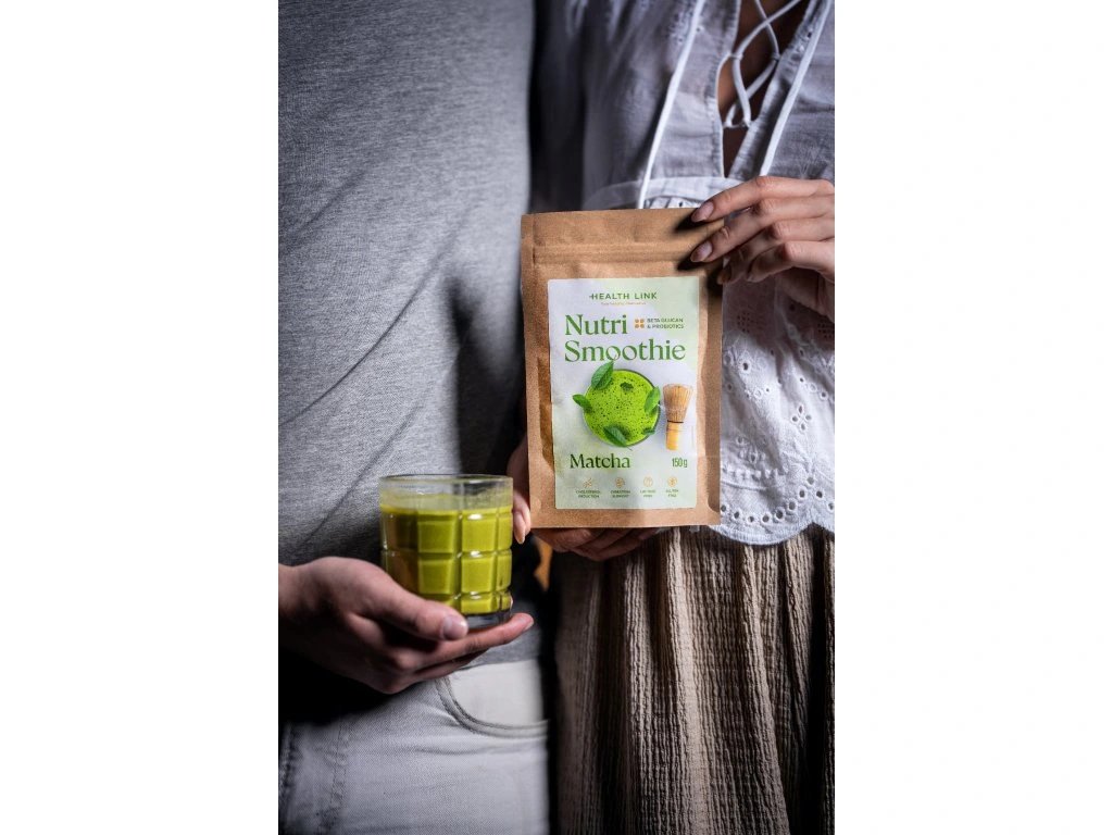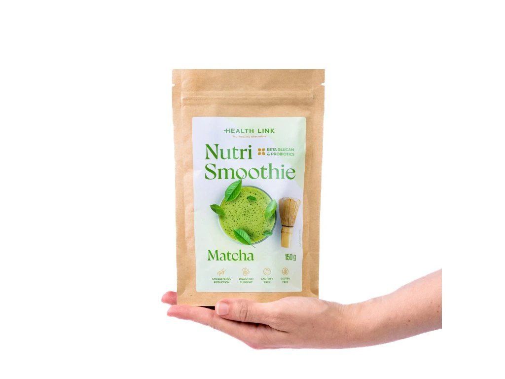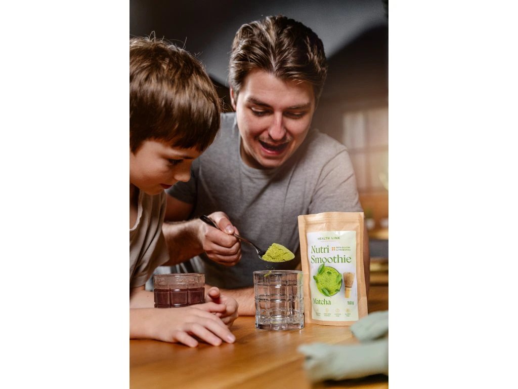 Nutri smoothie Matcha, prášková směs pro přípravu nápoje. Obsahuje probiotickou strukturu tvořící spóry odolné vůči vysokým teplotám.