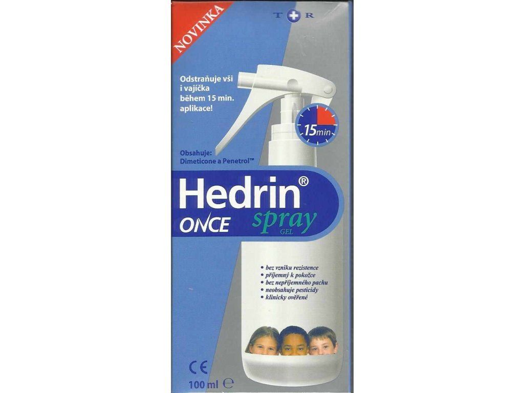 Hedrin Once Spray Gel odstraňuje vši i vajíčka. Tekutý gel ve spreji s mechanickým rozprašovačem. Rozprašovač umožňuje snadnou aplikaci. Gel funguje na principu udušení vší. Složka Penetrol mu pomáhá pronikat do vajíček vší a zahubit je. Gel lze používat dle potřeby, aniž by si na něj vši vytvořily odolnost.