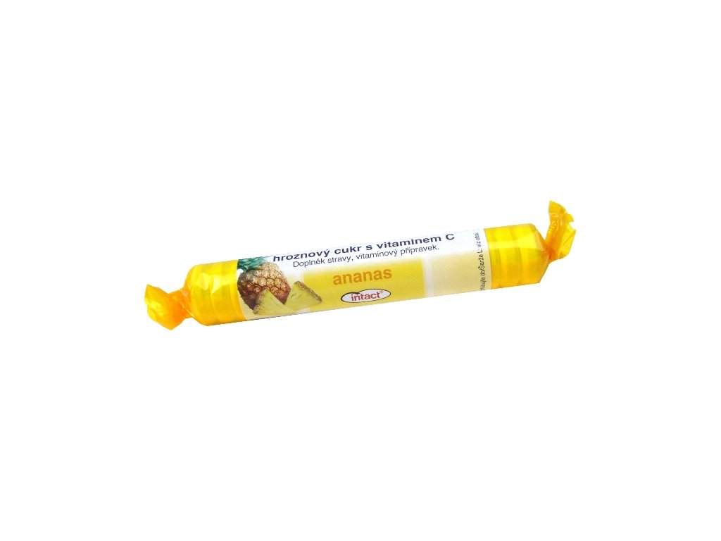 Pastilky z hroznového cukru s vitaminem C a příchutí ananasu. Bez lepku a laktózy.