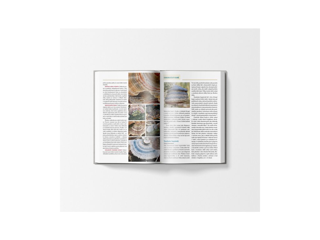 - Portréty hlavních druhů: shiitake, maitake, reishi, cordyceps, hlíva, chaga aj.