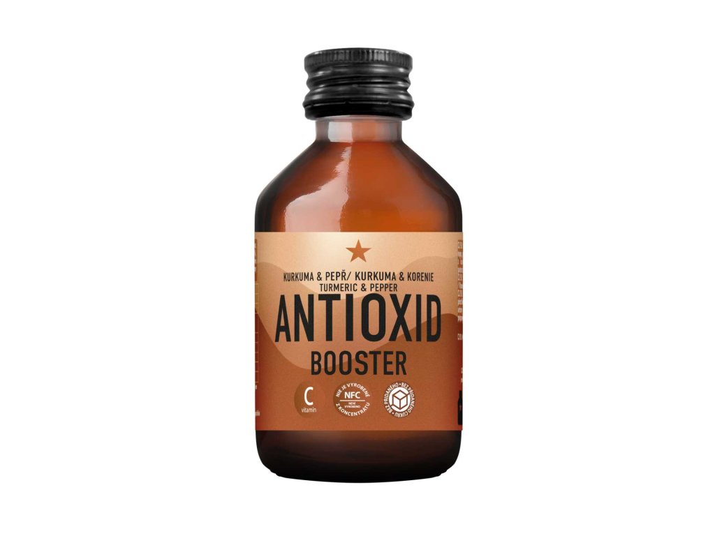 Antioxid Booster od české značky LEROS je vyroben z ovocných šťáv, které nejsou z koncentrátu (NFC), doplněných o šťávu z kořene kurkumy a mletý černý pepř. Nápoj je nesycený, pasterizovaný a neobsahuje konzervanty ani umělá sladidla.
