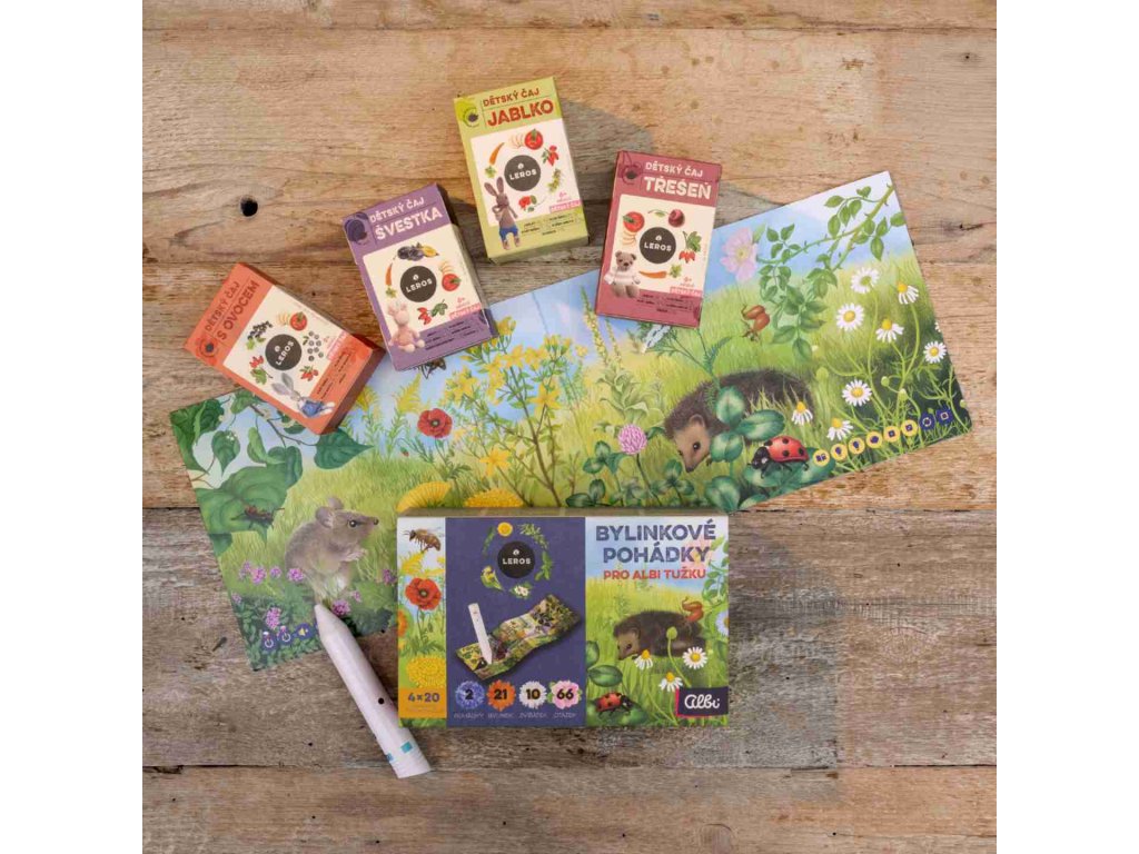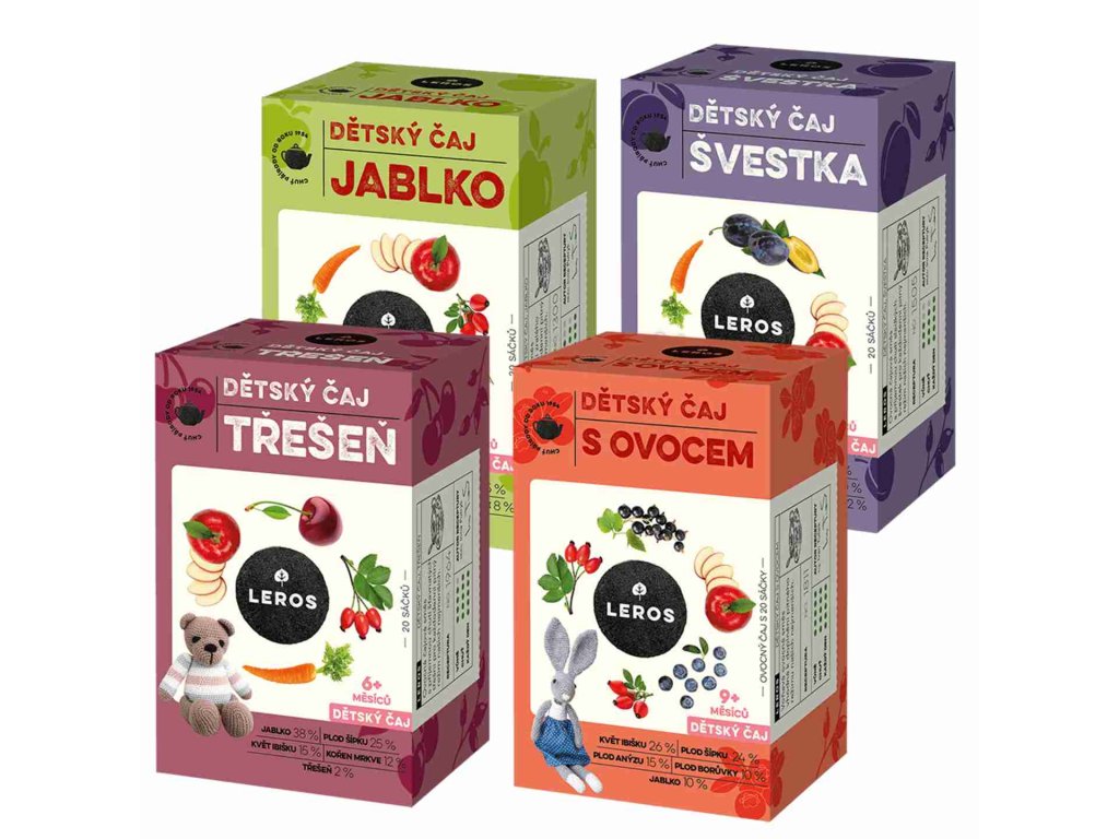 - 4 x 20 čajů pro nejmenší: Dětský čaj švestka, Dětský čaj jablko, Dětský čaj třešeň a Dětský čaj s ovocem.