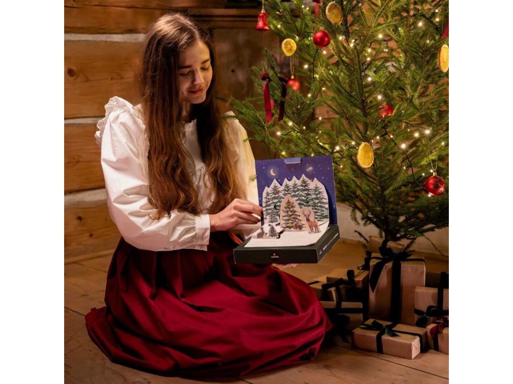 Tato elegantní papírová kazeta obsahuje 30 lahodných čajových sáčků v šesti různých variantách, které vám zpříjemní chladné zimní večery. Otevřením krabice se rozloží leporelo vánočního lesa se zvířaty, které obohatí váš vánoční stůl a potěší celou rodinu. Tento jedinečný dárkový set je ideální pro milovníky bylinek a jako dokonalý vánoční dárek pro vaše blízké.