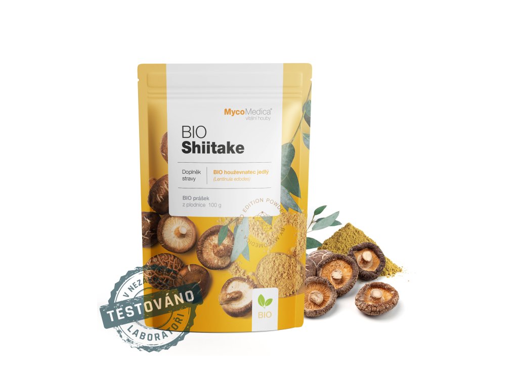 100% BIO Lentinula edodes – prášek z plodnice; bez přídatných látek.