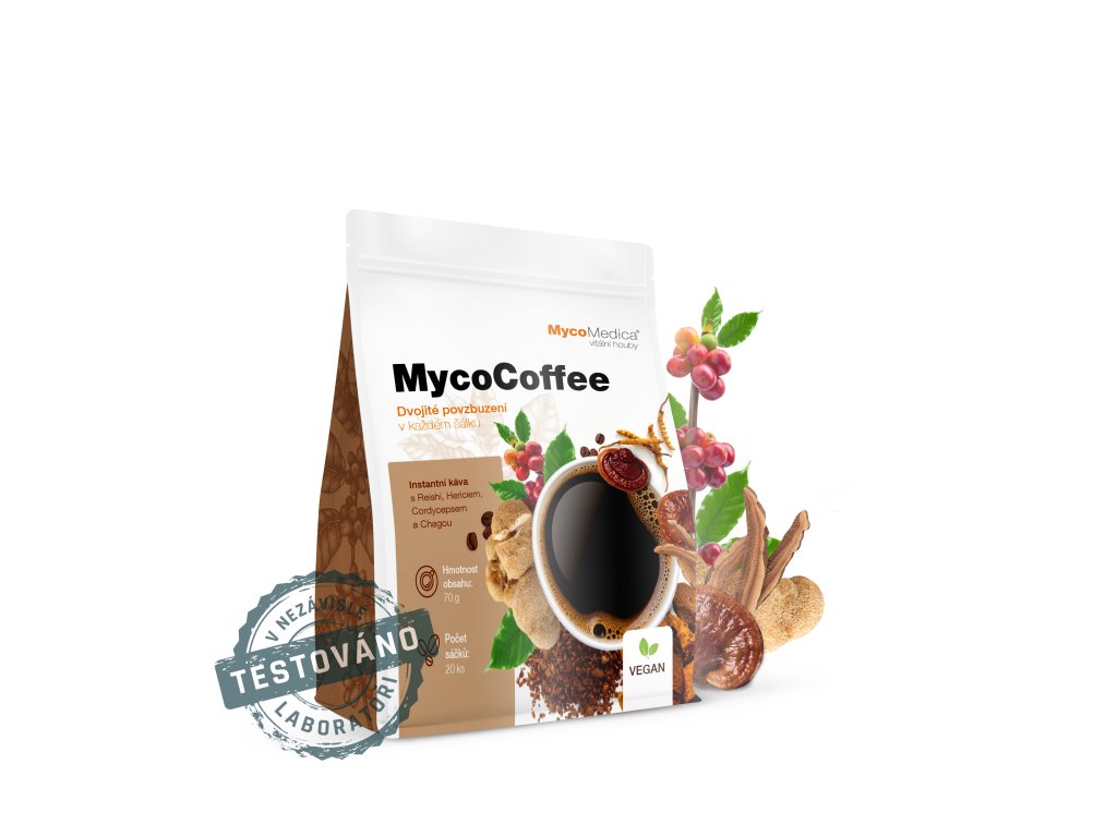 MycoCoffee spojuje výběrovou arabiku s extrakty z vital-hub Reishi, Cordycepsu, Hericia a Chagy. Každý sáček je připraven tak, aby dodal tělu energii, kterou oceníte při náročném dni, ale zároveň poskytl i podporu imunity a regeneraci organismu. Instantní forma umožňuje rychlou a snadnou přípravu.