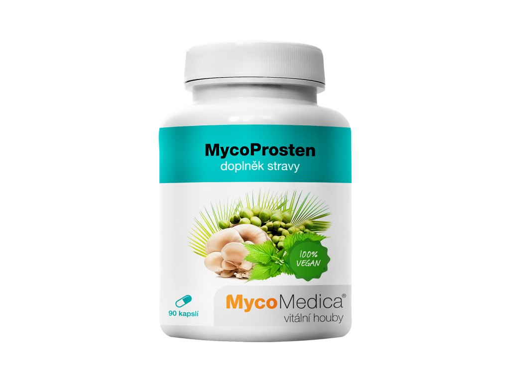 Přípravek MycoProsten je určen mužům na podporu správného fungování prostaty. Využívá pozitivních účinků vitální houby Maitake, kopřivy dvoudomé, serenoi plazivé, zinku, selenu a vitamínu E. Jejich synergické působení napomáhá přirozené obranyschopnosti, ochraně buněk před oxidativním stresem, normálnímu fungování močové soustavy a přispívá k udržení odpovídající hladiny testosteronu v krvi.