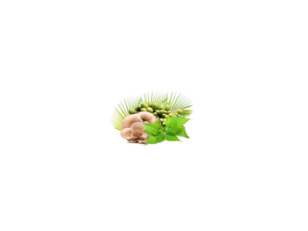 Kopřiva dvoudomá, Urtica dioica, extrakt z kořene 1 % kyseliny křemičité – 200 mg, Saw palmetto, Serenoa repens, extrakt z plodu 4:1 – 160 mg, Maitake, Grifola frondosa, extrakt z plodnice 30 % polysacharidů – 150 mg, Zinek, mléčnan zinečnatý – 5 mg, Vitamin E, DL-alfa-tokoferyl-acetát – 12 mg, Selen, L-seleno-methionin – 27,5 µg