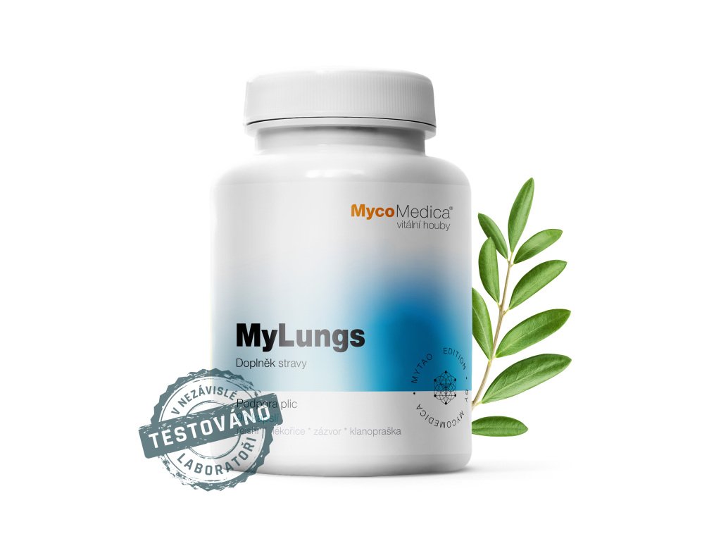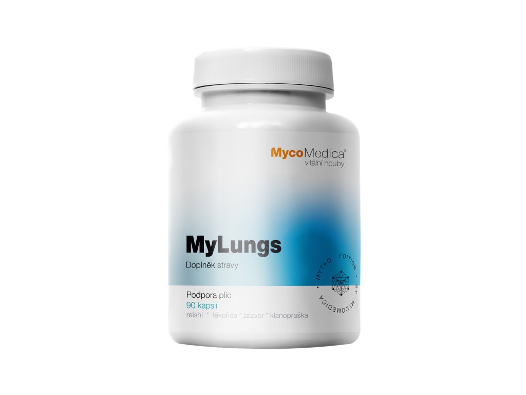 MyLungs je bylinně–houbová směs vytvořená pro období zvýšené zátěže dýchacího systému nebo následné regenerace. Z pohledu tradiční čínské medicíny směs posiluje Qi Plic a Sleziny, vyživuje Yin Plic a Ledvin, zvlhčuje sliznice a napomáhá odvádění vlhkosti a hlenu (Tan), který může zatěžovat dýchací cesty. Současně podporuje Wei Qi (obrannou Qi), tedy přirozenou obranyschopnost organismu, a harmonizuje dýchací systém i psychickou rovnováhu.