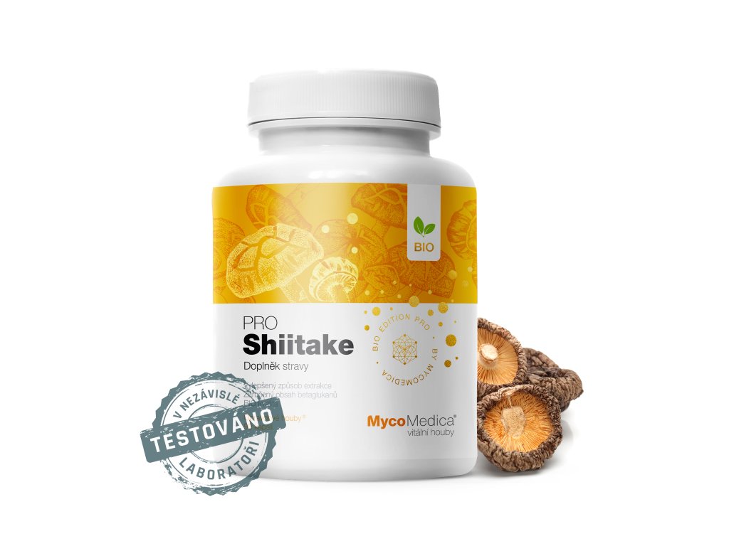 500 mg BIO Shiitake (Lentinula edodes - houževnatec jedlý, extrakt - kombinovaná extrakce z plodnice min. 35 % betaglukanů)